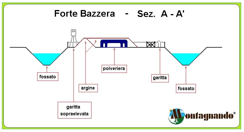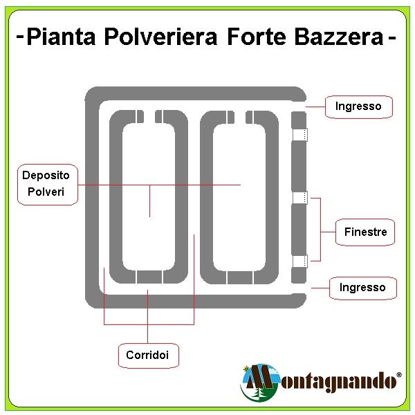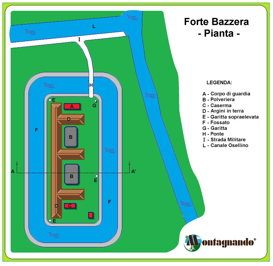 Mappa dell'area di Forte Bazzera Sezione dell'area di Forte Bazzera Pianta della polveriera