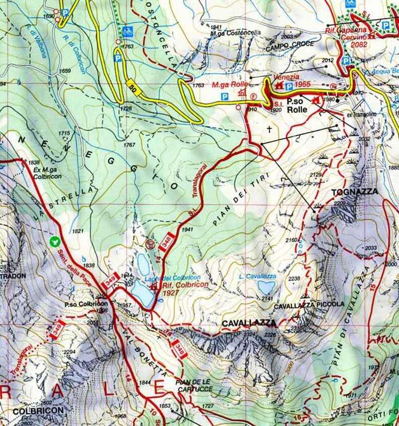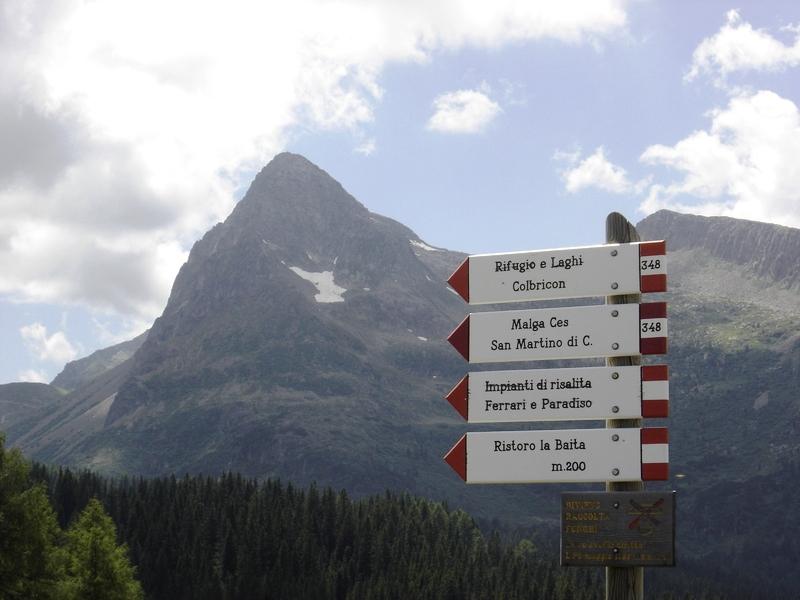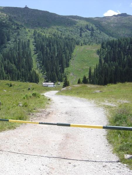 La passeggiata tranquilla e distensiva, inizia subito dopo Passo Rolle in direzione di Predazzo, dove possiamo lasciare l'auto nel parcheggio a destra subito dopo Malga Rolle, dall'altra lato della SS50 troviamo una strada sterrata chiusa da una sbarra gialla e nera, è qui che parte il sentiero CAI 348.