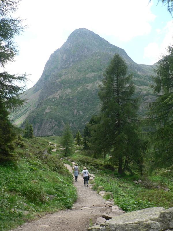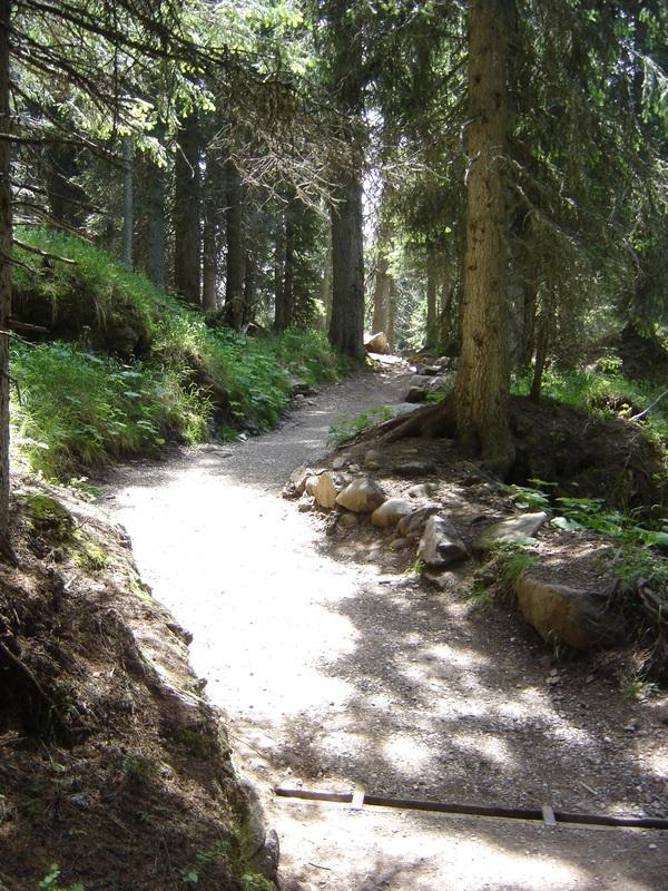 Percorriamo la strada sterrata per circa 200 metri quando a sinistra oltre un ponticello in legno, segnalato da cartelli, troviamo il sentiero vero e proprio. Il tragitto si svolge nel bosco di pini cembri, larici e dei famosi abeti di risonanza, in un percorso comodo e piacevole senza incontrare forti dislivelli.