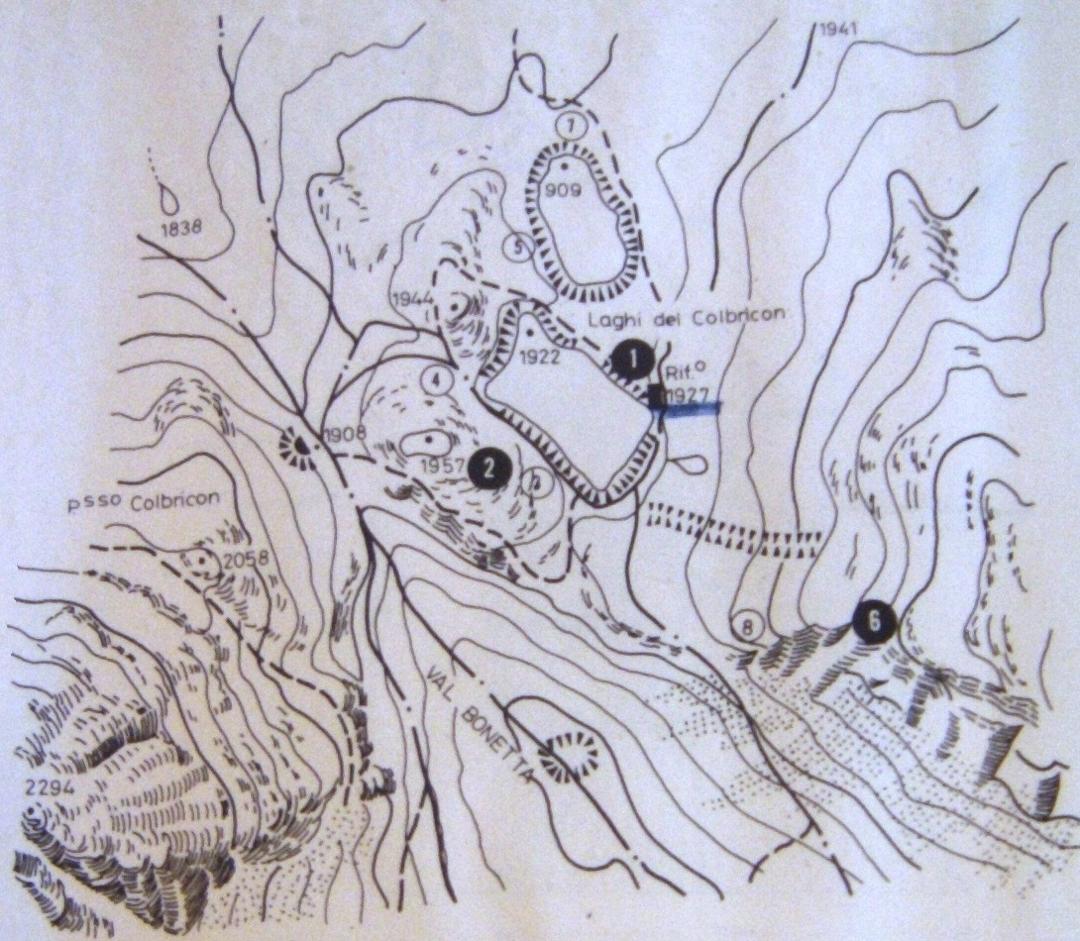 In questa mappa si possono vedere le numerose tracce individuate nella zona dei laghi, nel cerchio bianco i siti individuati in quello nero i siti oggetto di scavo.