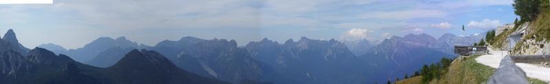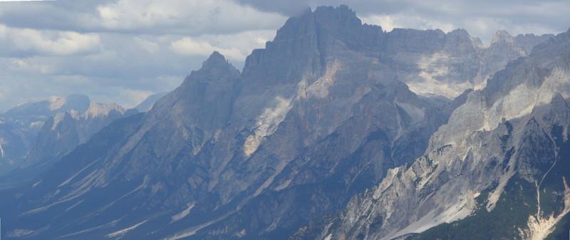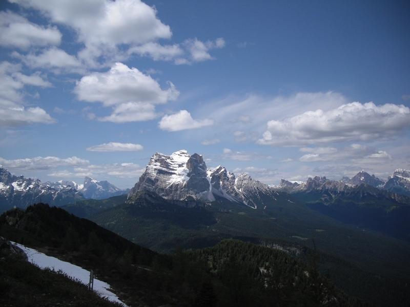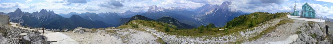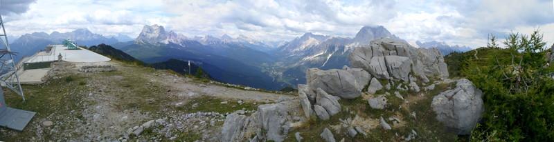 Panorama a Nord con vista sul gruppo delle Tofane, sul gruppo del Sorapiss e sulle pendici dell'Antelao