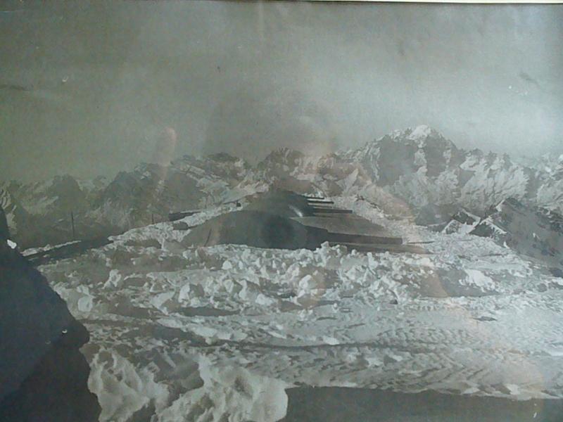 In questa foto verso Ovest si puó distinguere la forma del forte e il gruppo del Moiazza-Civetta sullo sfondo.