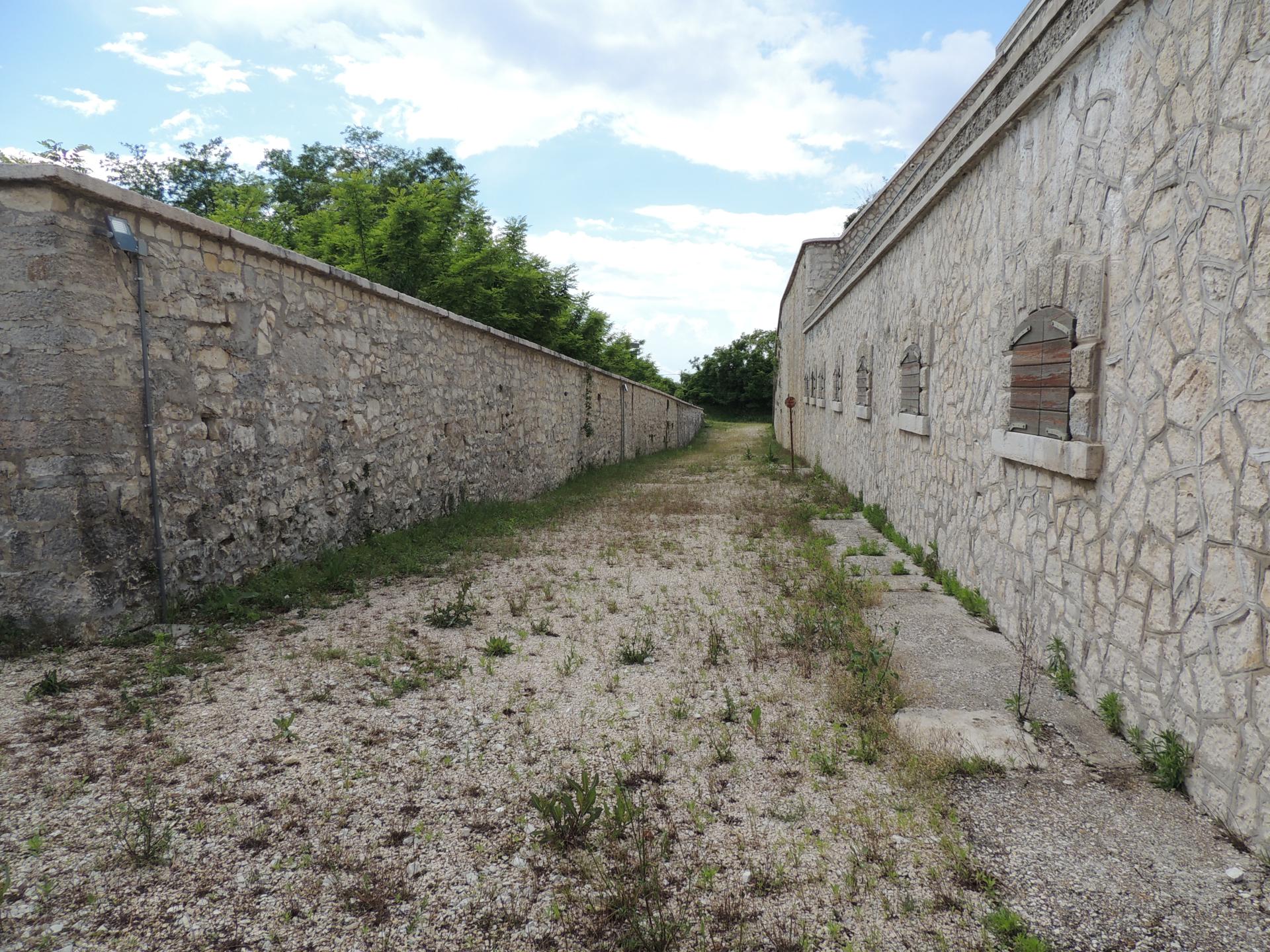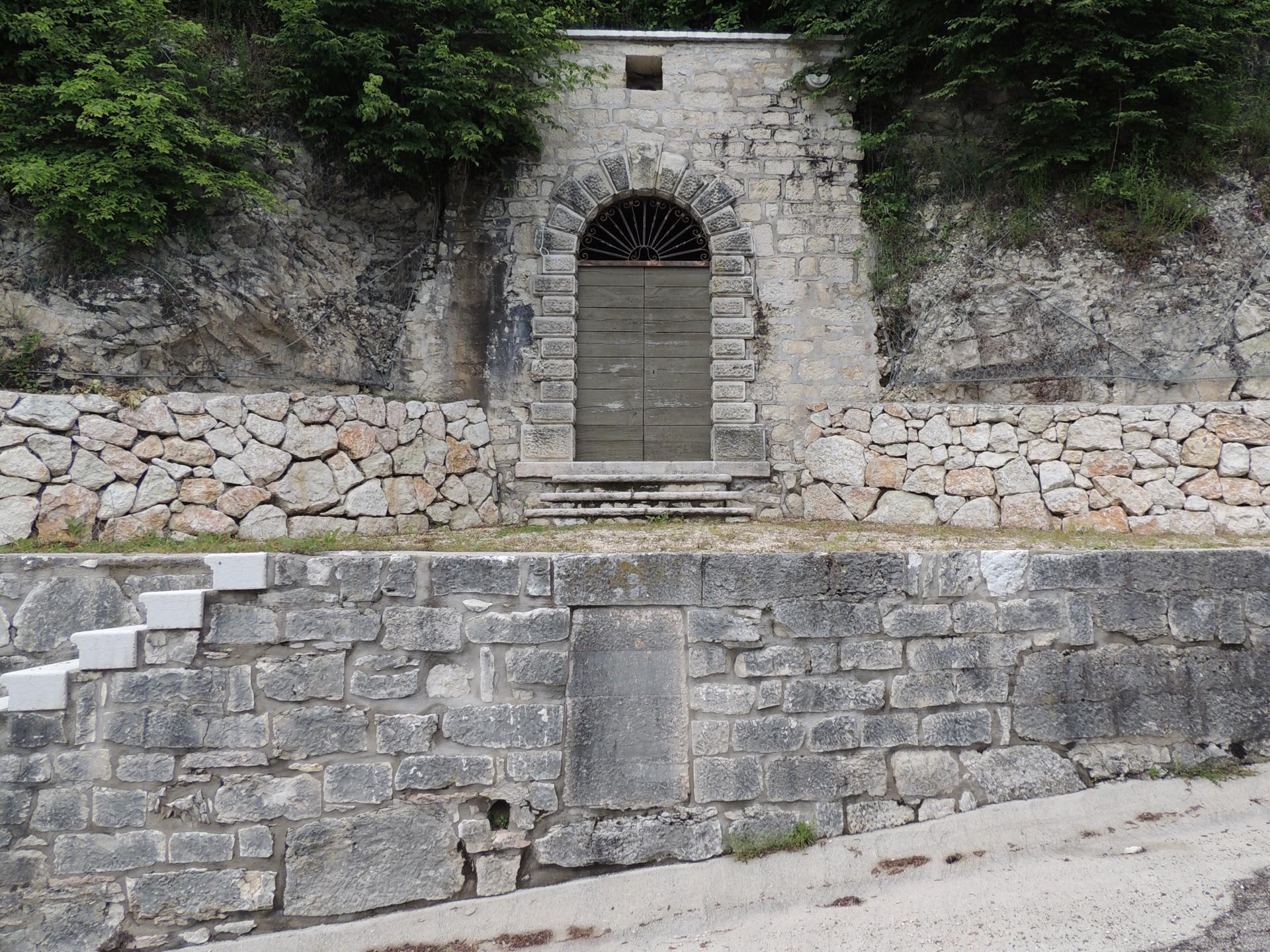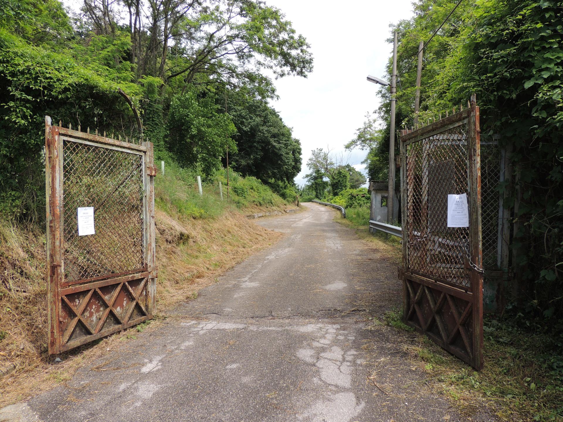 Lasciata la zona caserme, troviamo lungo la strada un portone d'ingresso un po' misterioso perché non c'è nessun edificio ed è direttamente sul fianco del monte