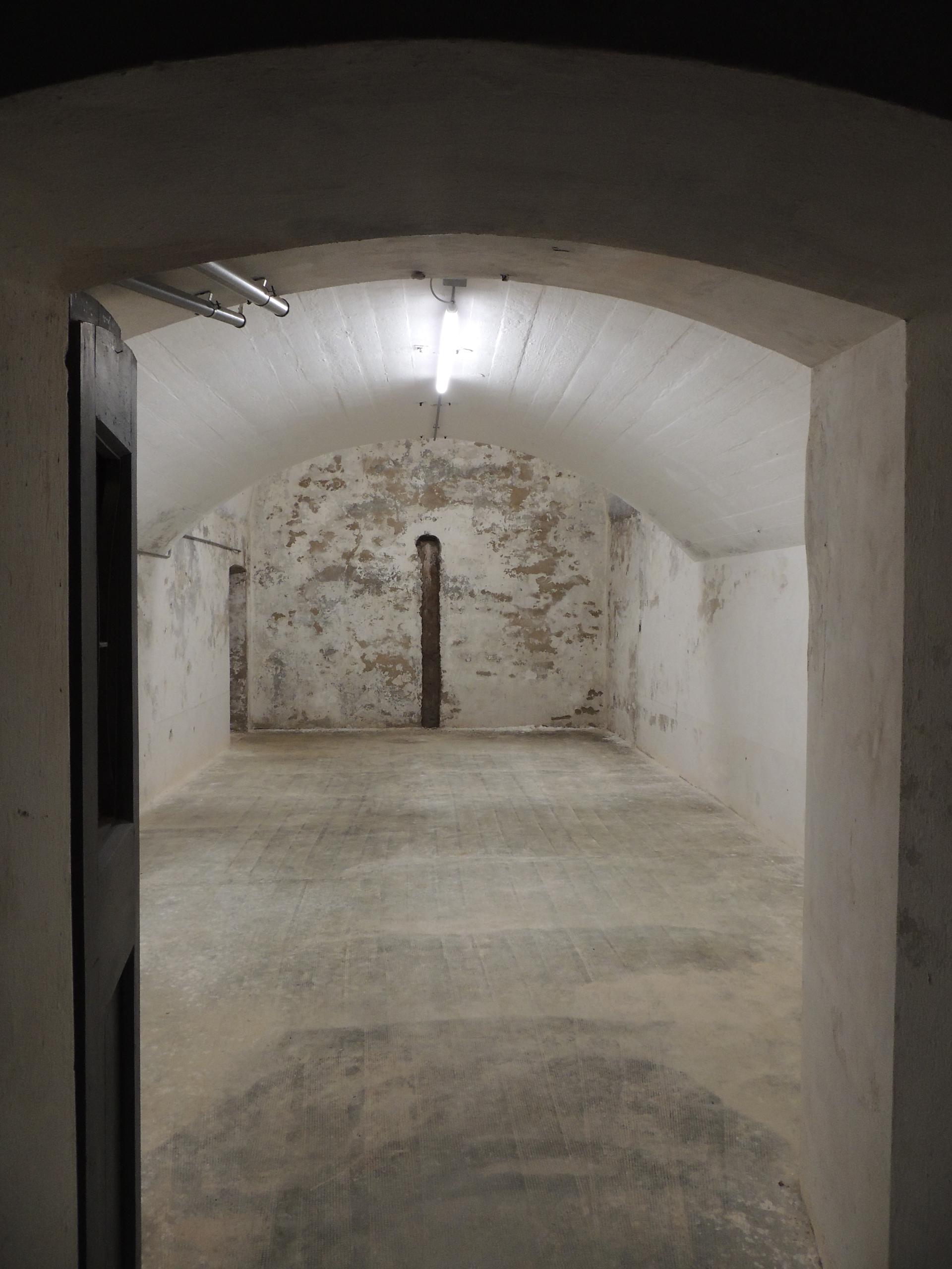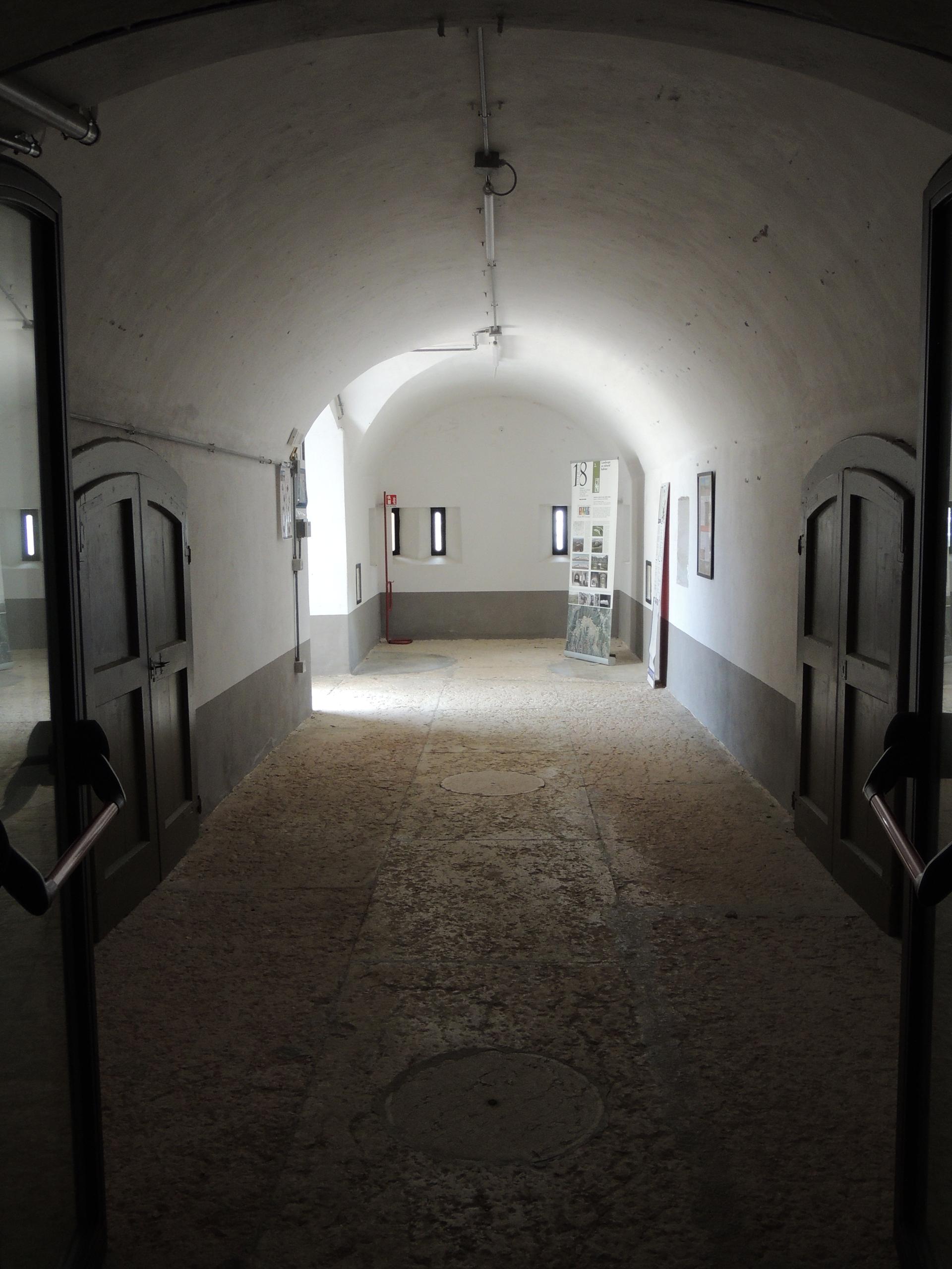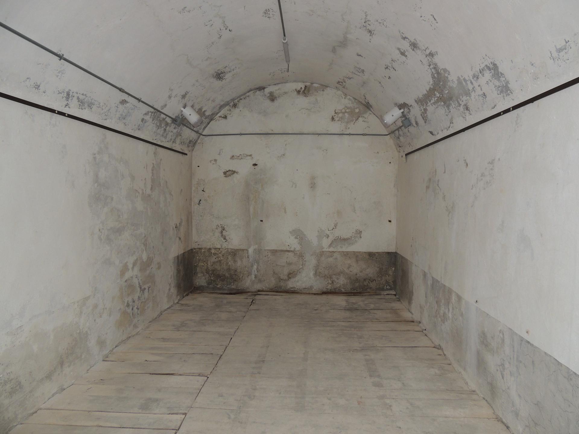 L'interno della caponiera d'ingresso, notare sul pavimento le botole delle cisterne