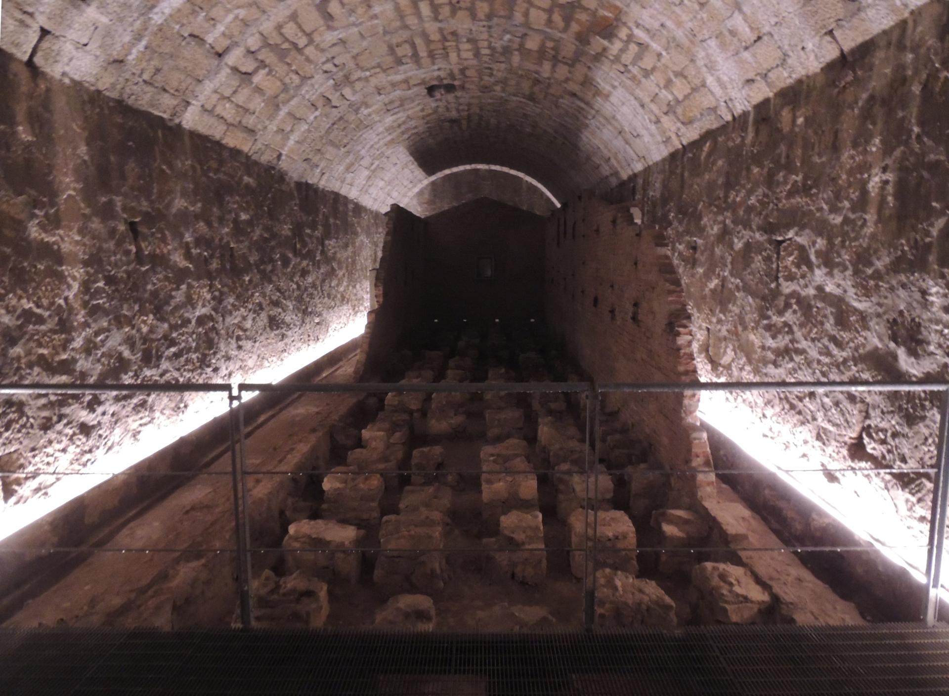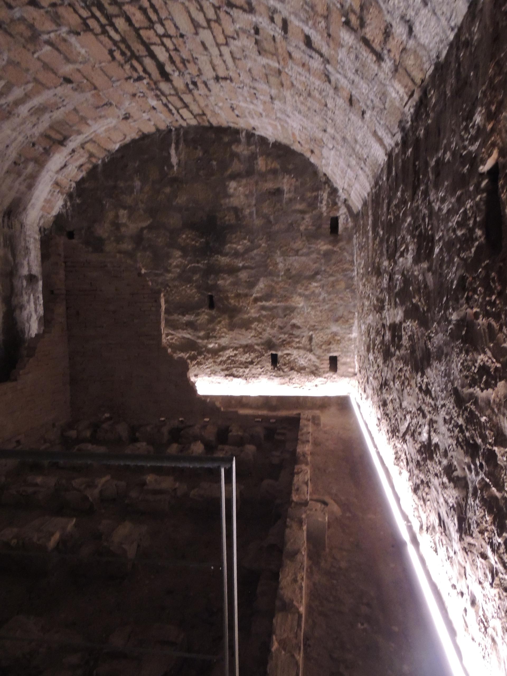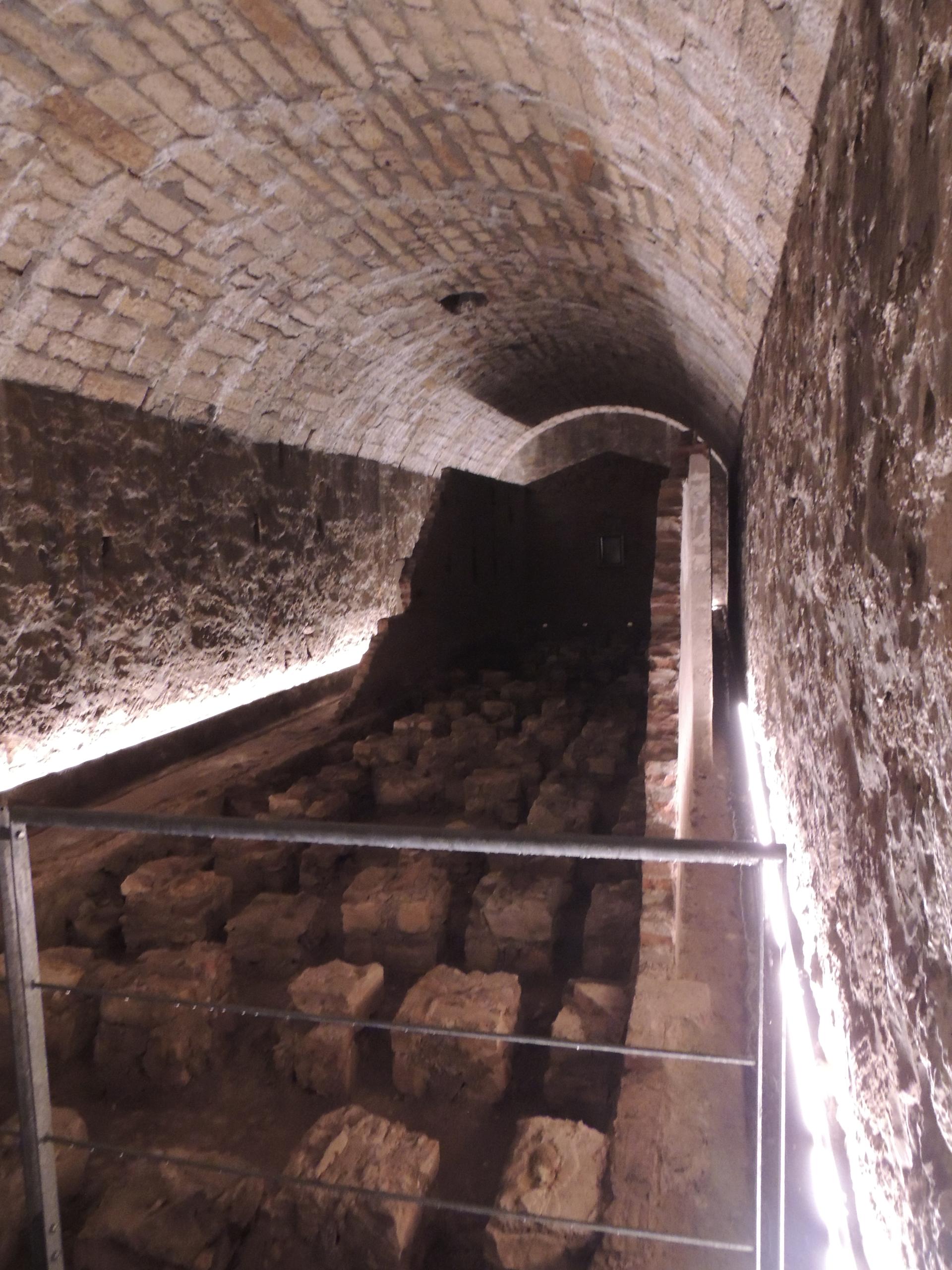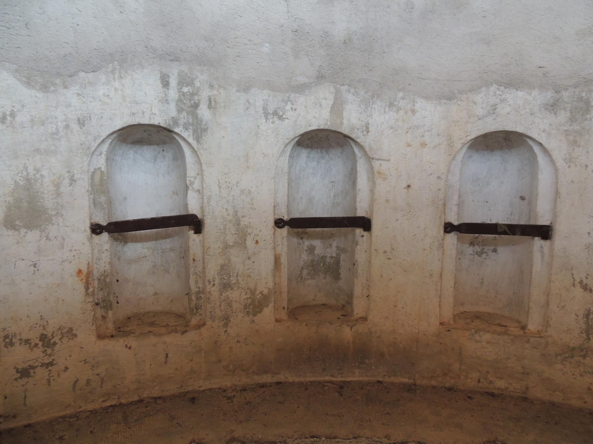 L'interno della caponiera d'ingresso, notare sul pavimento le botole delle cisterne