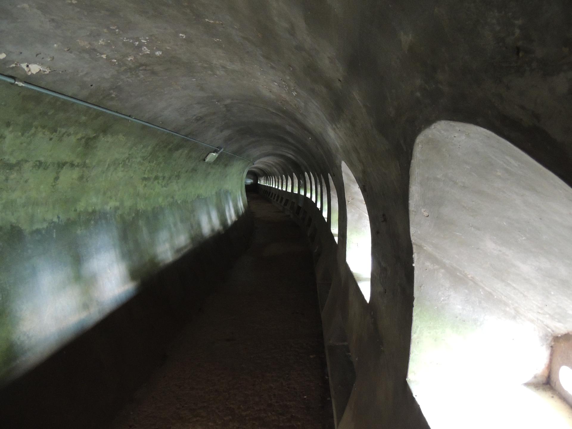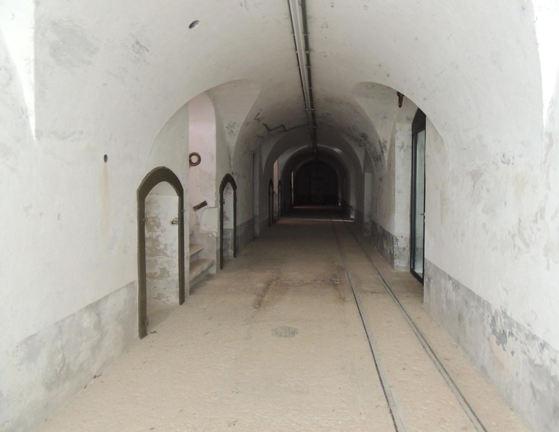 Il corridoio delle batterie, notare i binari per il trasporto delle munizioni