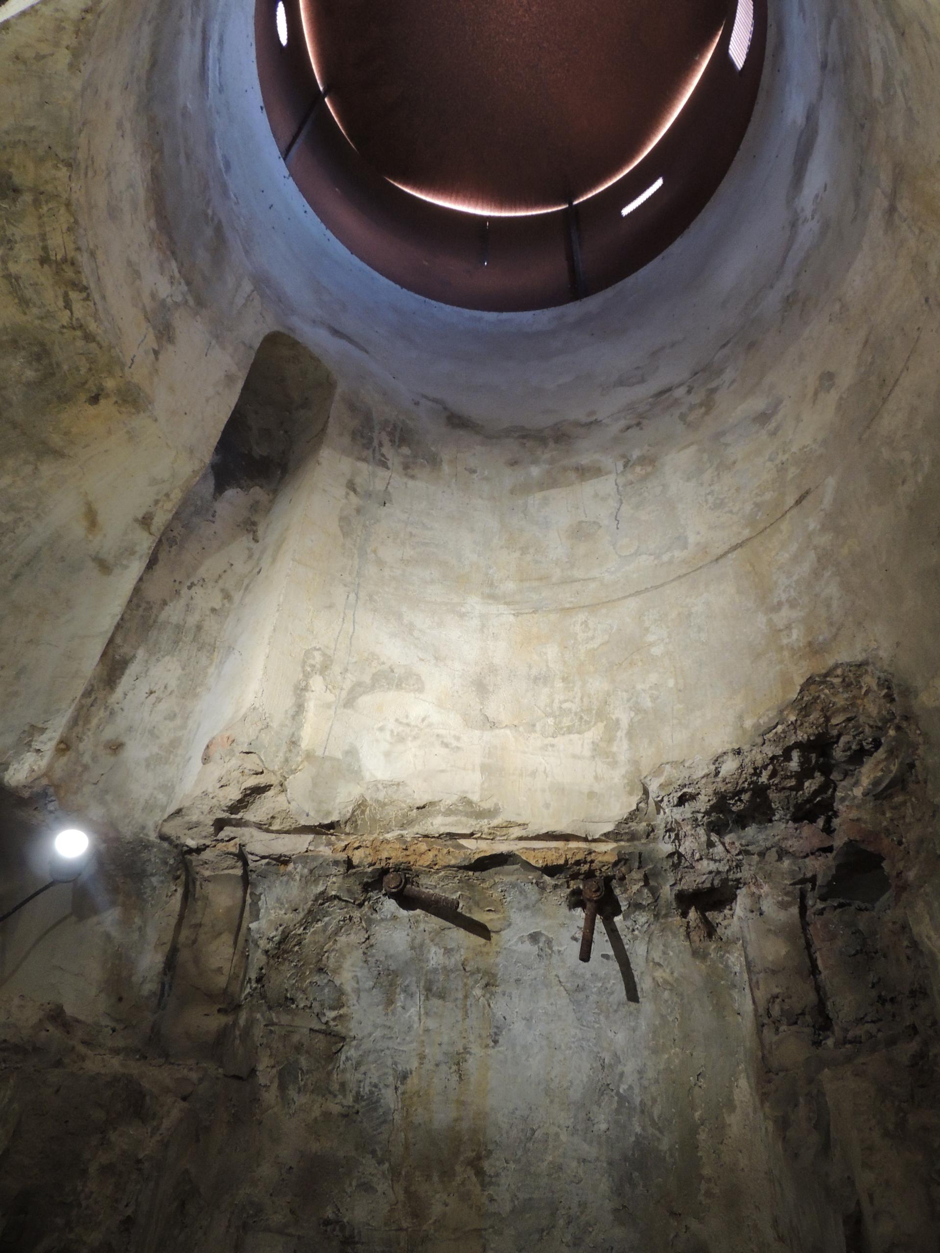 Nel restauro i pozzi sono stati coperti da semplici cupole in acciaio che richiamano l'effettiva forma delle cupole originarie