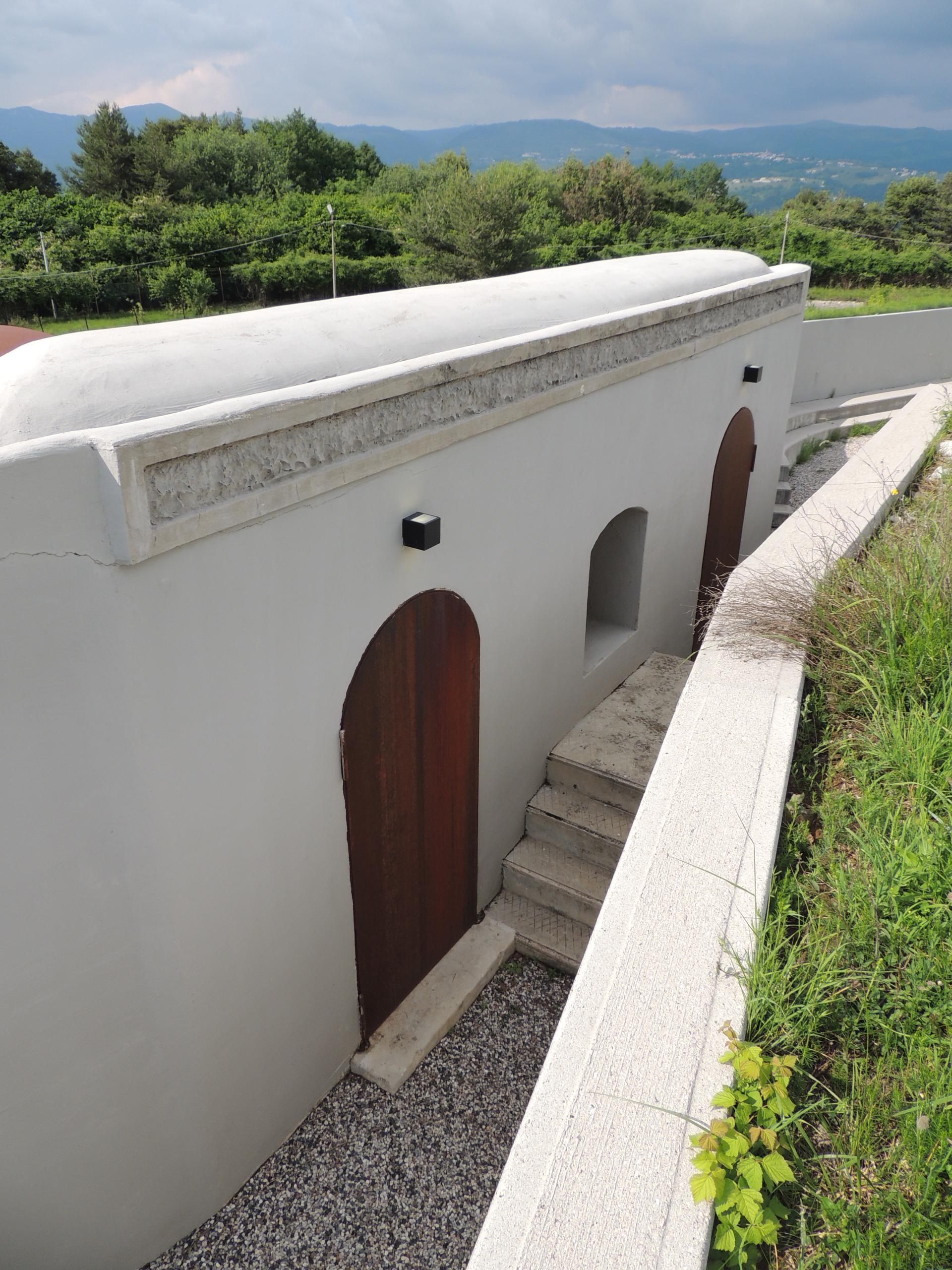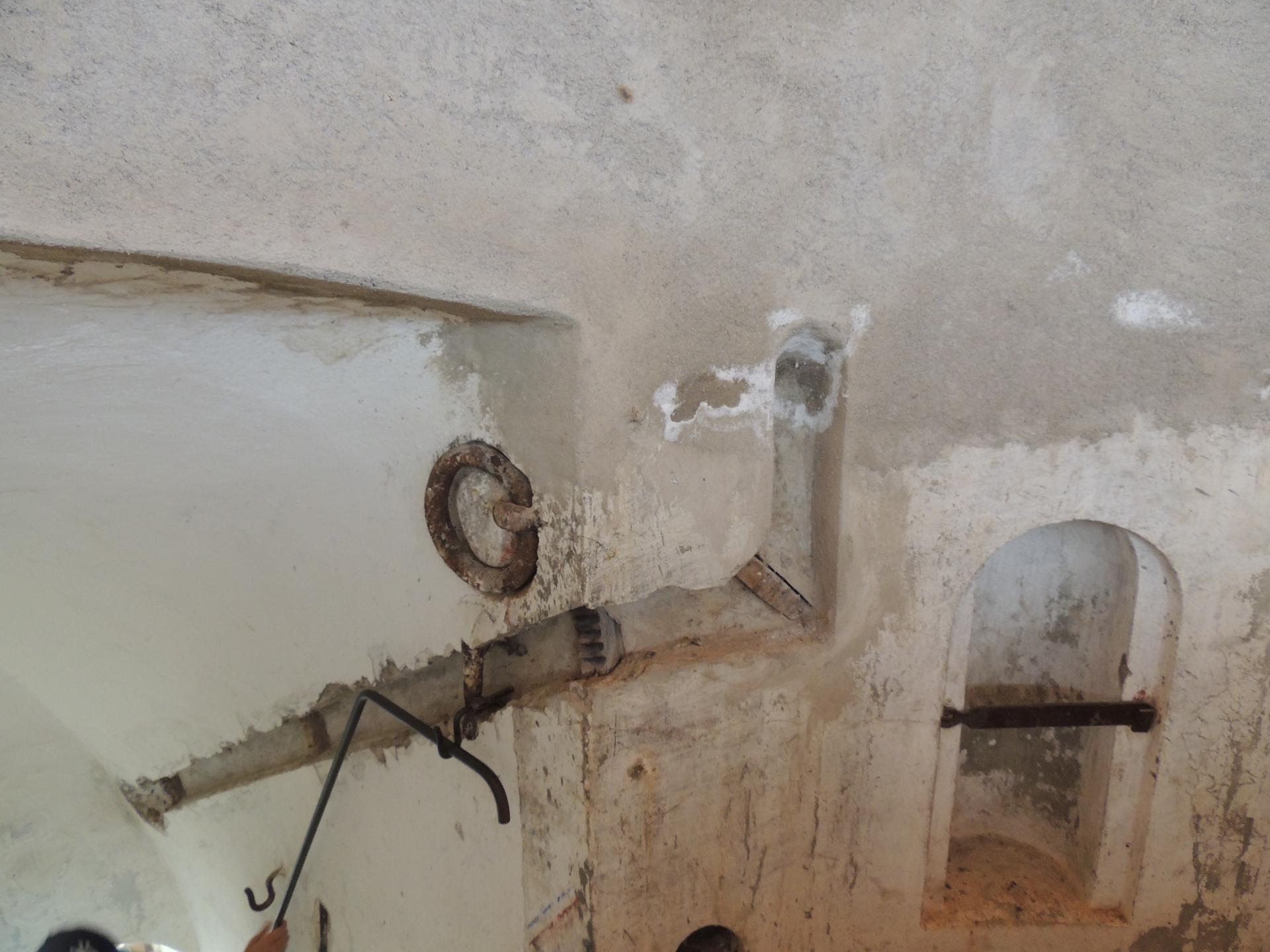 Lungo il corridoio delle batterie delle ripide scale salgono ai pozzi dove erano posizionati i cannoni da 149/35A, protetti da cupole corazzate di tipo Armstrong di 14 cm di spessore.