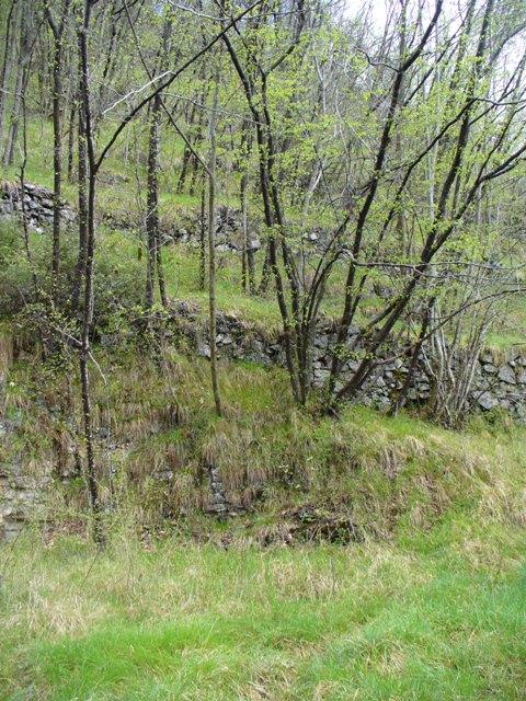 Alcune delle gallerie di ricovero e deposito. Nella muratura di sostegno della sede stradale vi sono spesso dei conci sporgenti.