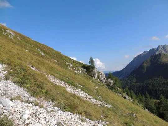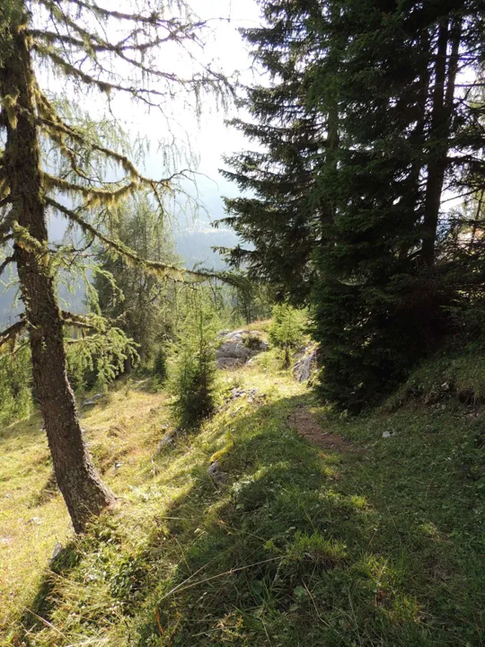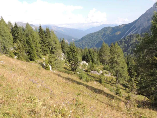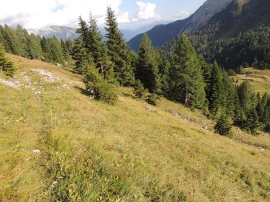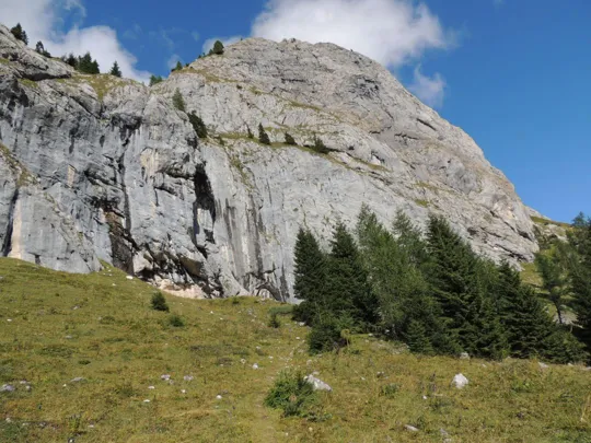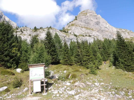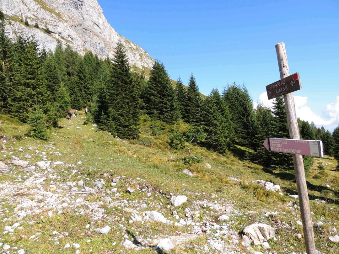 Partendo dal parcheggio in Val Sesis, seguiamo la strada che sale al rifugio Pier Fortunato Calvi, per circa dieci minuti, fino al primo tornante dove a destra si stacca una traccia di sentiero che si infila fra gli alberi e successivamente arriva a sfiorare la base rocciosa del Chiadenis.