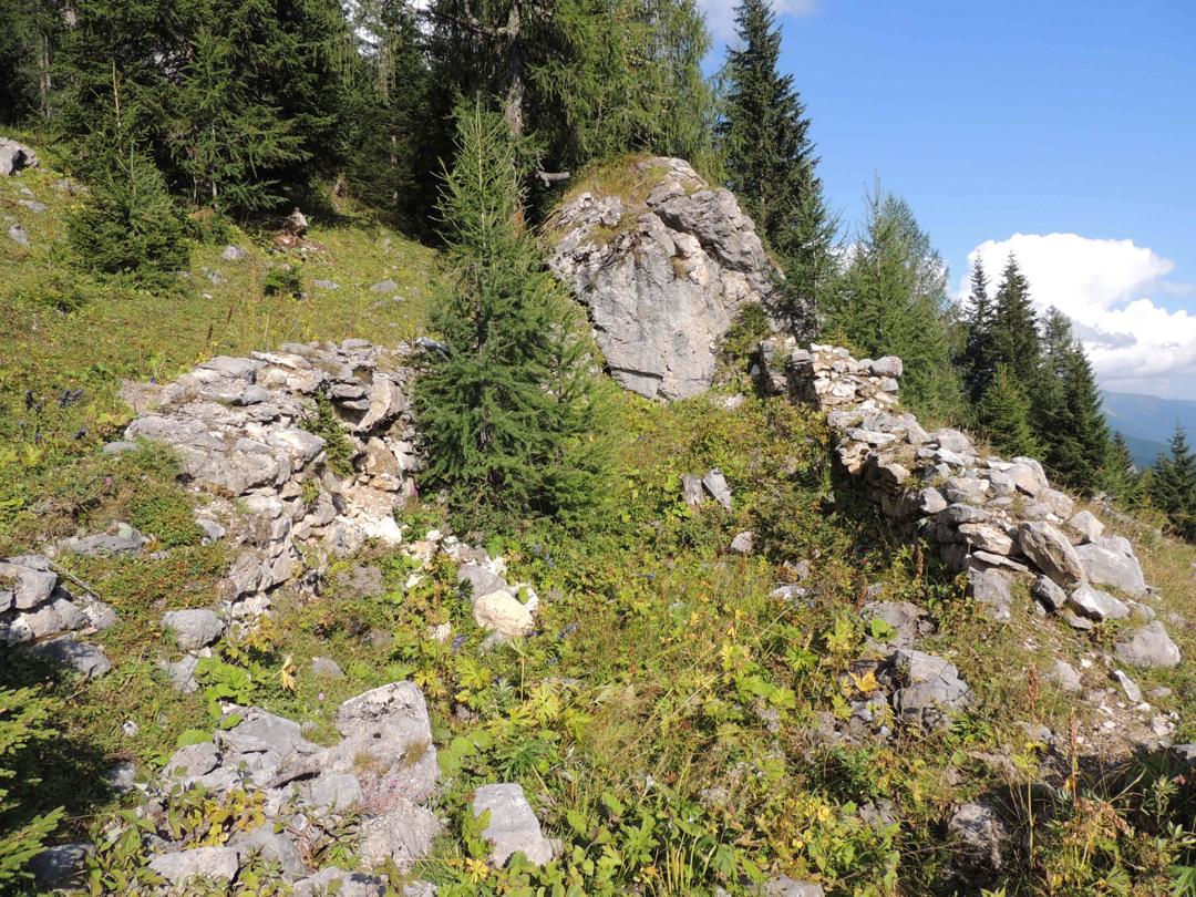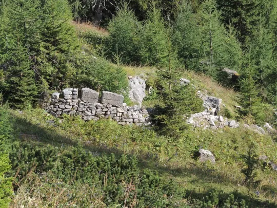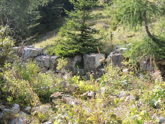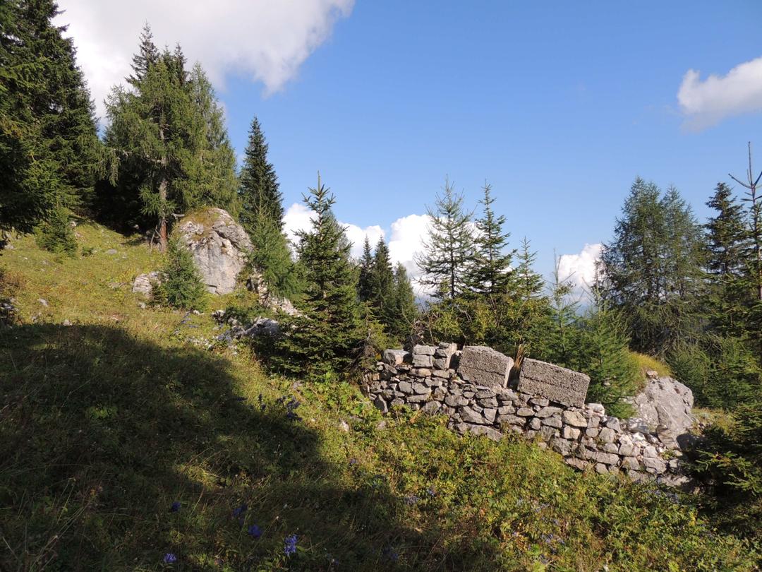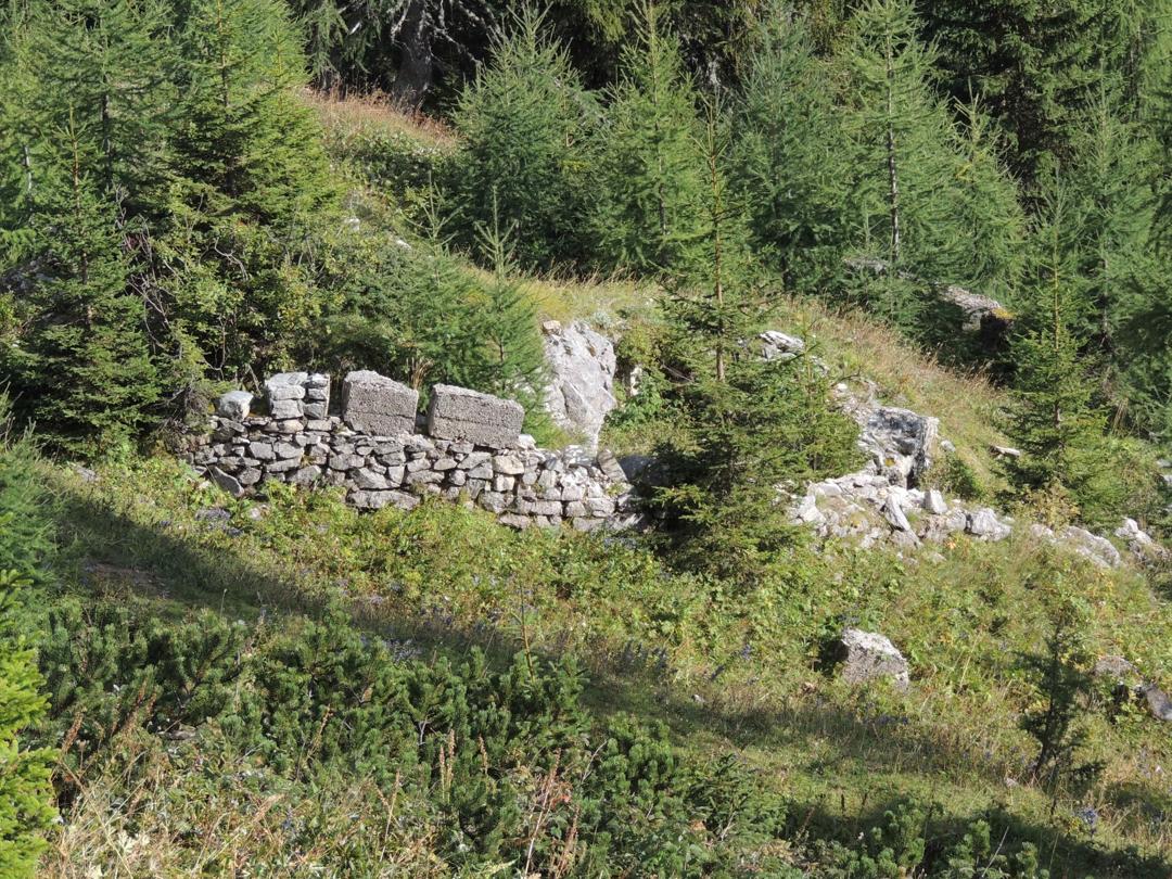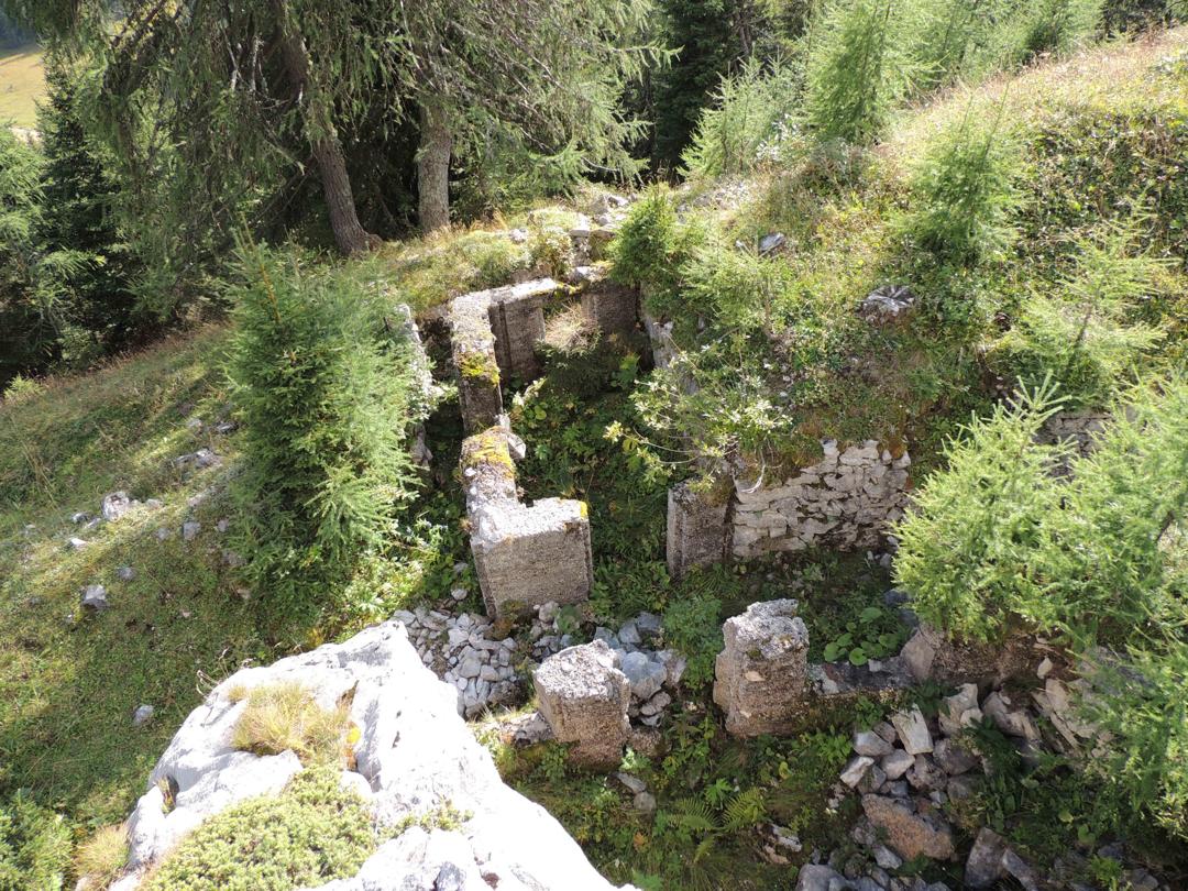 Proseguendo a mezza costa, per altri venti minuti, incrociamo i resti del Presidio Secondario.