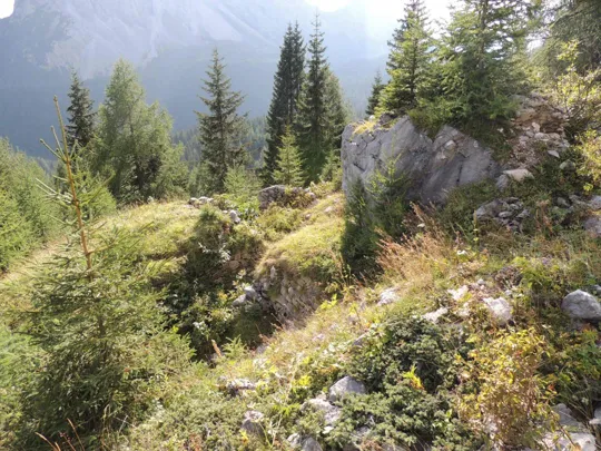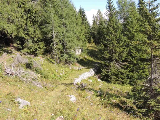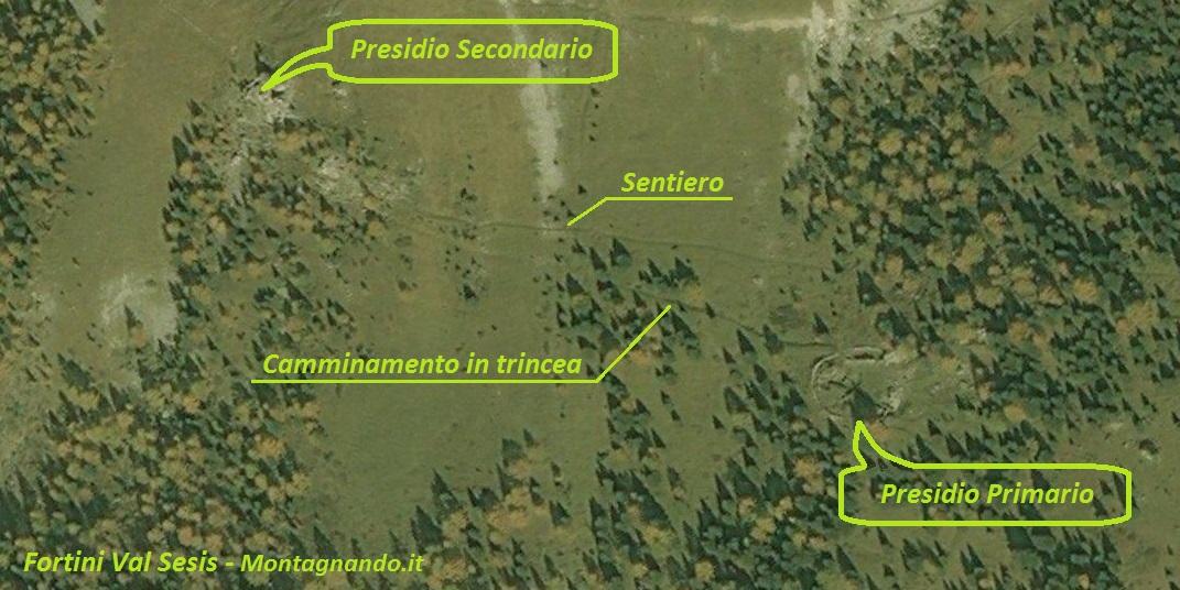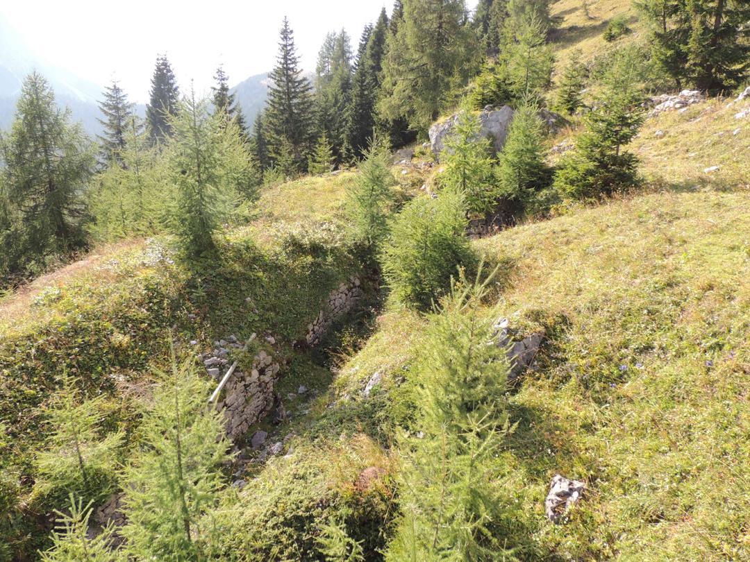 Un lungo camminamento in trincea corre parallelo al sentiero