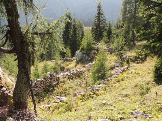 ma si possono notare i resti in pietra di numerose baracche nonchè una trincea perimetrale, dando più l'idea di un campo fortificato che di uno sbarramento difensivo.