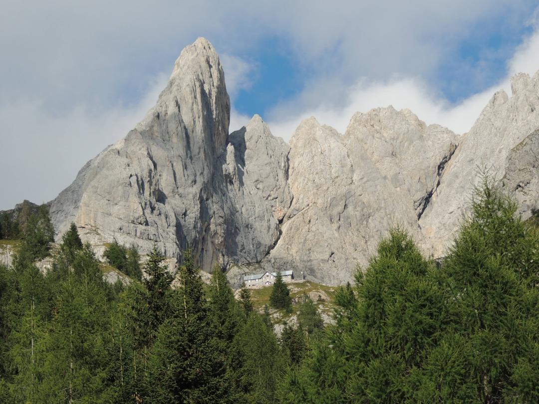 Vista sul Pic Chiadenis e il Rifugio Pier Fortunato Calvi dal parcheggio