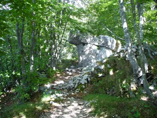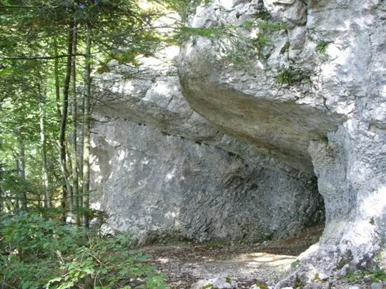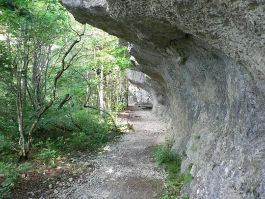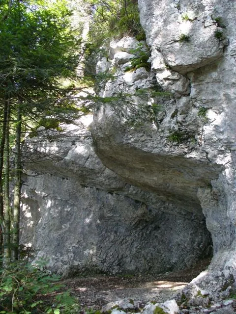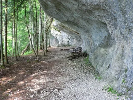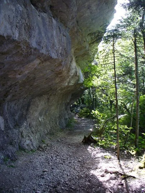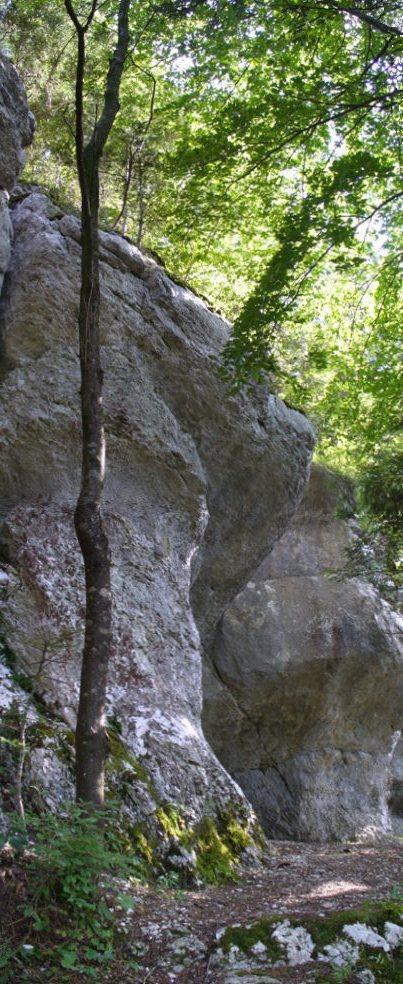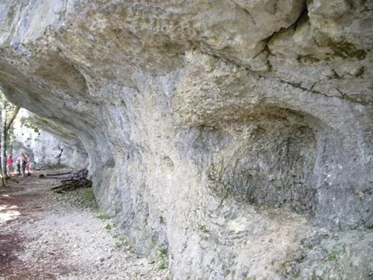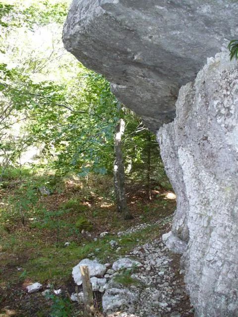 Si tratta di una lunga tettoia naturale che spunta inaspettatamente nel bosco