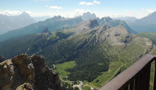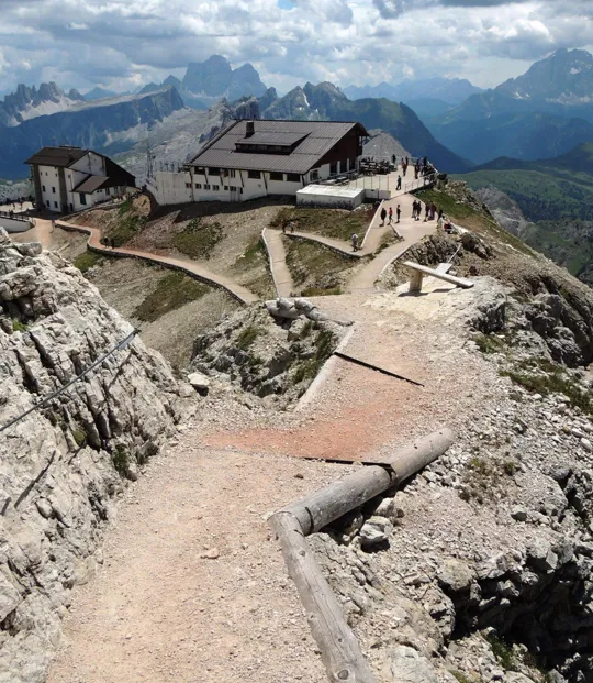 Volendo invece cimentarsi nei sentieri non abbiamo che l'imbarazzo della scelta: lungo il sentiero 402 Sentiero Italia, ci lasciamo alle spalle la stazione di partenza della funivia e ci dirigiamo sulla destra del Monte Lagazuoi costeggiando inizialmente la pista da sci, si sale il pendio su tornanti fino a sotto Punta Berrino, qui troviamo resti di ricoveri e l'ingresso della Galleria, quindi si continua in decisa salita per raggiungere forcella Travenanzes e da qui lungo il 401 in moderata pendenza lungo la pista da sci fino a forcella Lagazuoi, ora il rifugio è in vista e in breve si raggiunge. Questo percorso regala magnifici panorami e scorci indimenticabili.