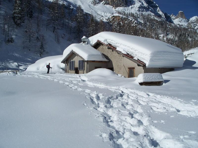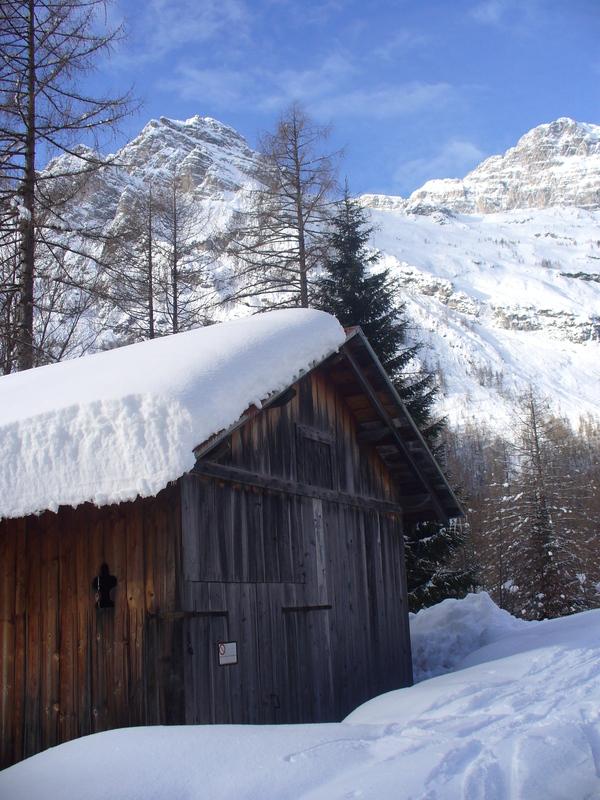 Malga della Grava, ai piedi del Civetta, nel periodo invernale.