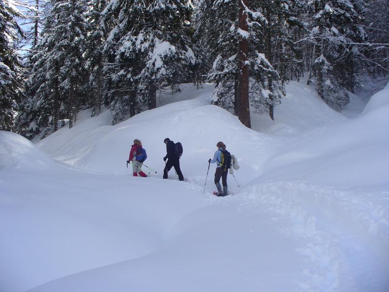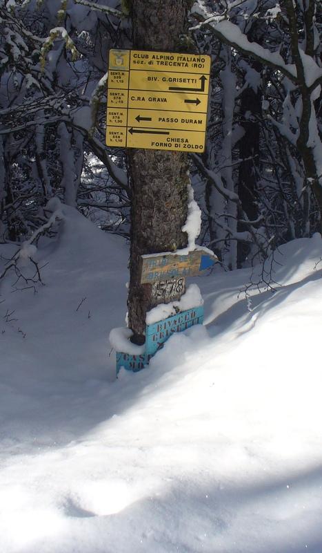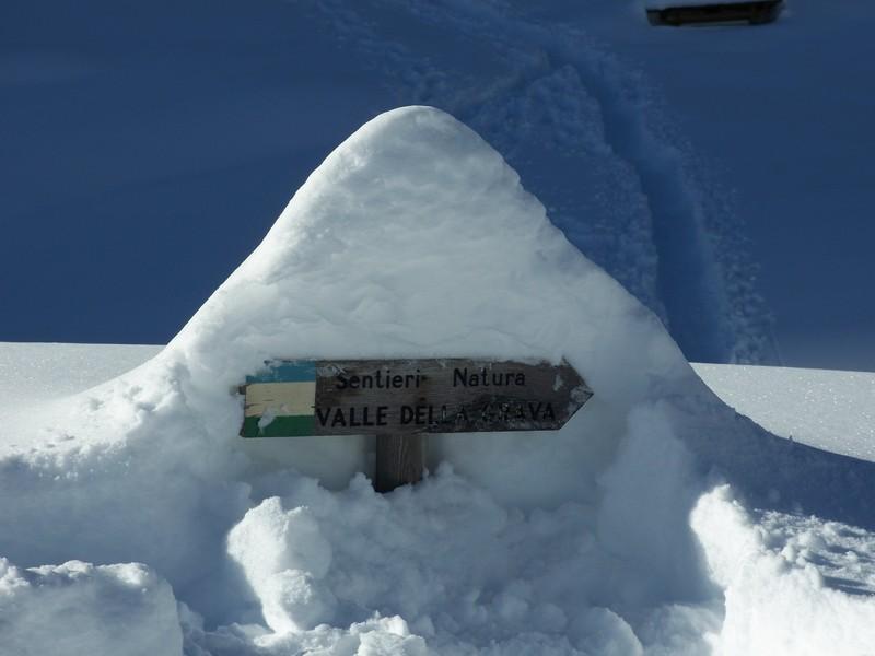 La neve caduta è veramente tanta, per fortuna il sentiero è ben segnato e con le ciaspole non si incontrano particolari difficoltà. Tutt'altra cosa se invece si cerca di andare fuori pista....