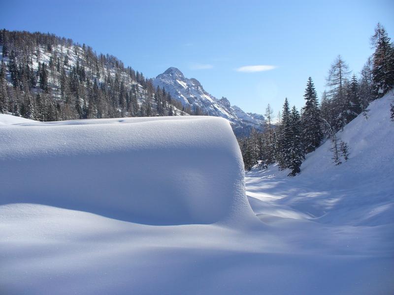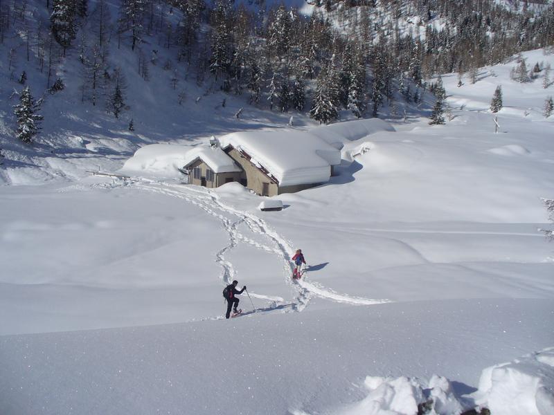 In questa escursione vi descriviamo il tragitto effettuato con le ciaspe (o ciaspole), che da località Chiesa di Don di Zoldo a 1245 metri ci porta fino a Casera della Grava posta a 1627 metri.