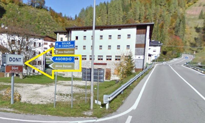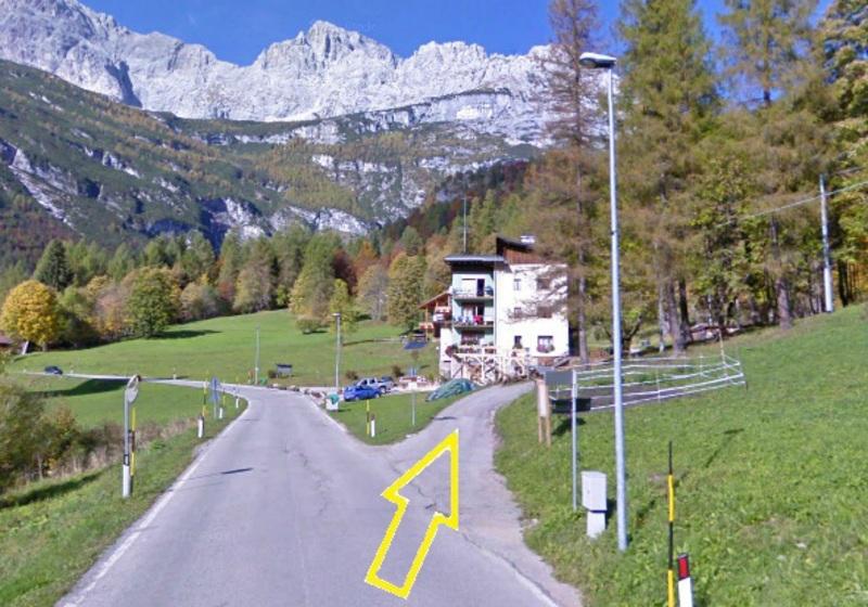 Possiamo orientarci con queste due foto del bivio a Dont di Zoldo, che dalla SP 251 immette sulla SP 347. Giunti al bivio prendere a sinistra e proseguire per circa 4km fino a Via Canzel Grant dove è possibile parcheggiare. La strada a destra è l'inizio del nostro sentiero.