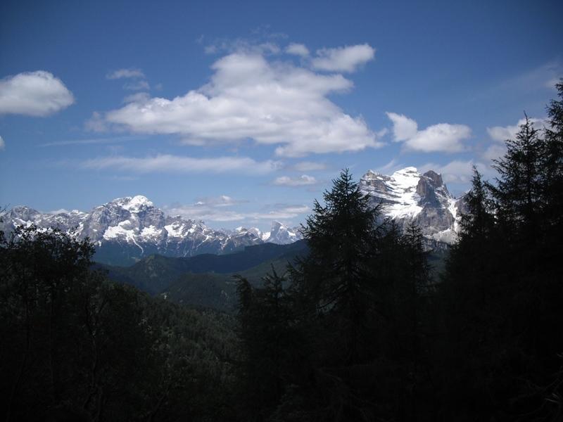 In questa foto, verso Ovest, si puó distinguere l'estremitá del San Sebastiano a sn, il gruppo del Moiazza-Civetta sullo sfondo e a dx Punta Penia della Marmolada.