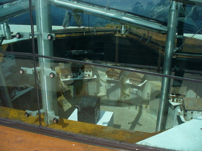 Alcuni dei modelli delle case Walser esposte all'interno del pozzo di combattimento.