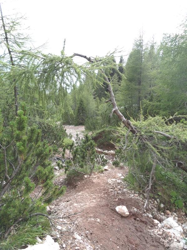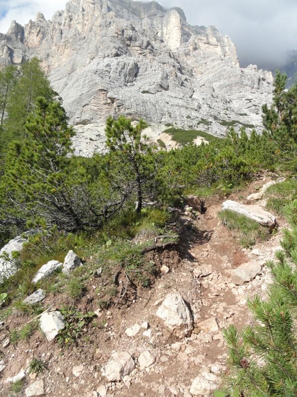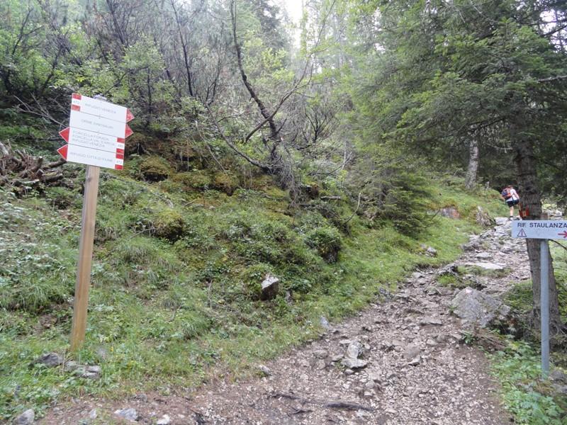 Dopo aver attraversato il prato innanzi al rifugio Staulanza, il sentiero si addentra nel bosco e subito incrociamo il bivio con il sentiero CAI 472 che seguiremo voltando a destra.