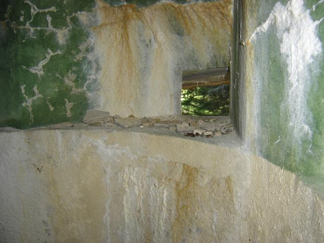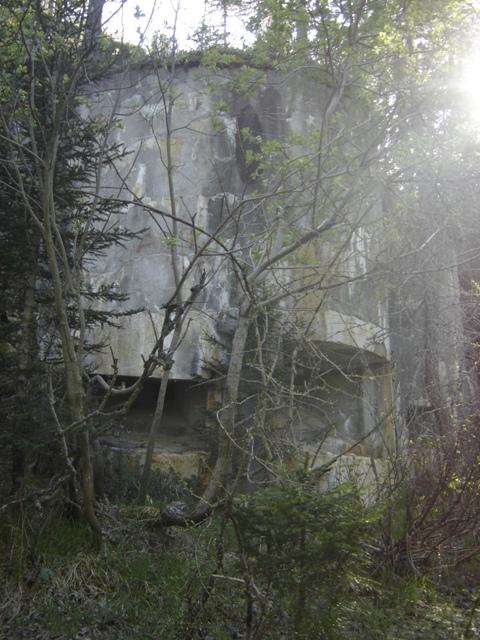 Cerchiamo quindi un'altra casamatta e la troviamo poco più in alto. In effetti l'esterno della postazione superiore sembra più articolata; tre bocche da fuoco a difesa dell'ingresso e dello spiazzo antistante e uno stretto cunicolo lungo circa un metro e mezzo, ci fanno supporre che si tratti proprio dell'ingresso principale.