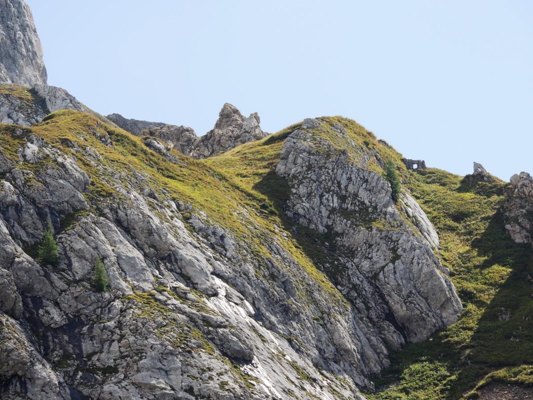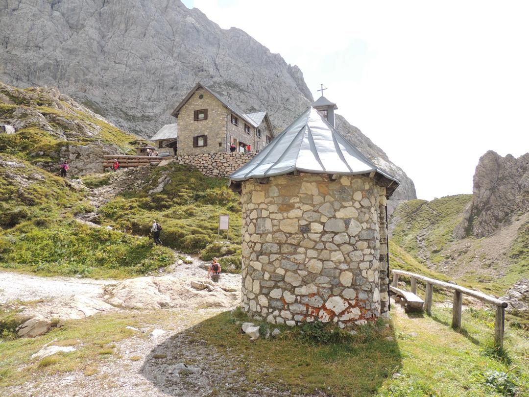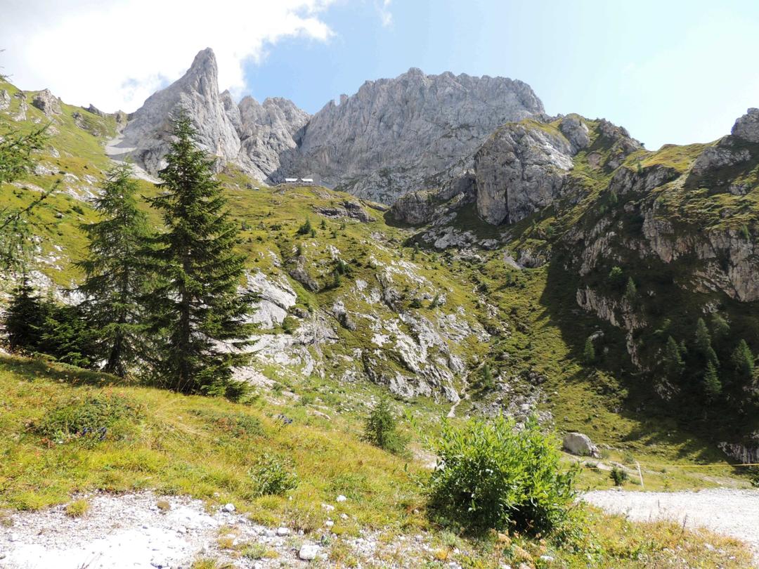 vista sul Rifugio Pier Fortunato Calvi, dall'attaco della Ferrata per il Chiadenis