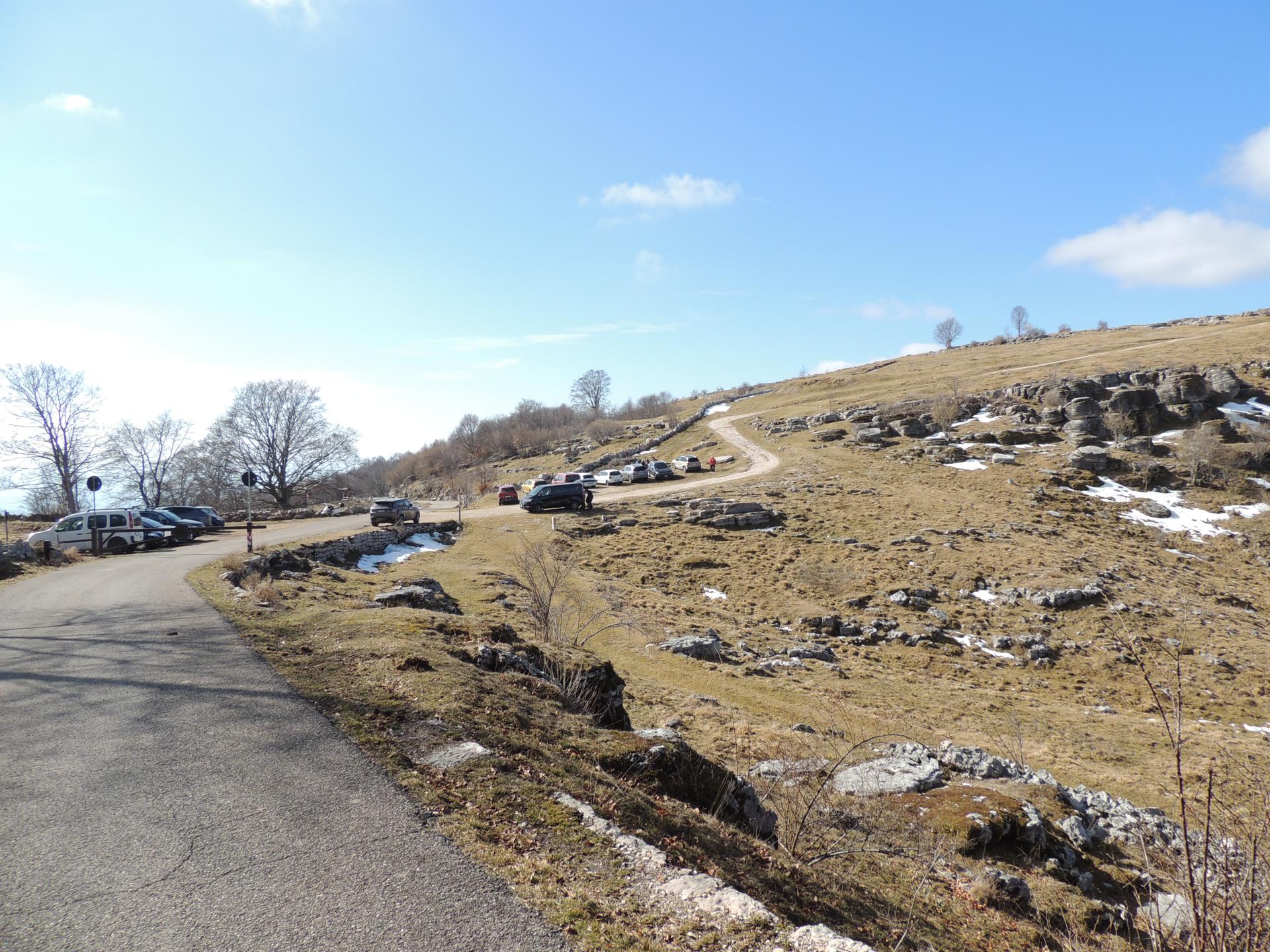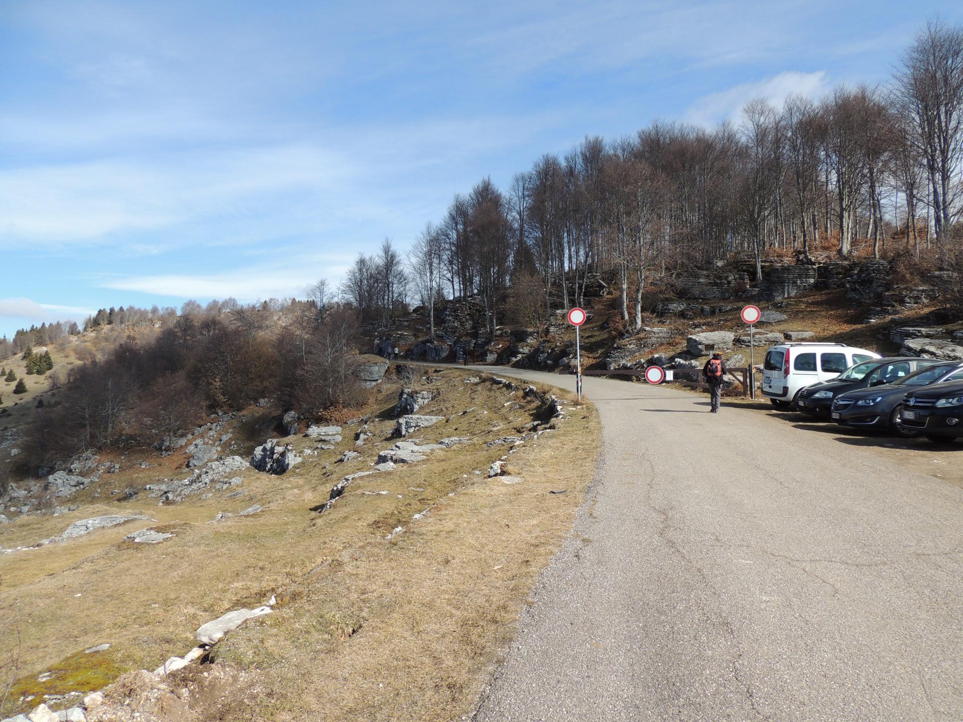 Il parcheggio di Malga Derocchetto, visto dall'inizio del nostro percorso