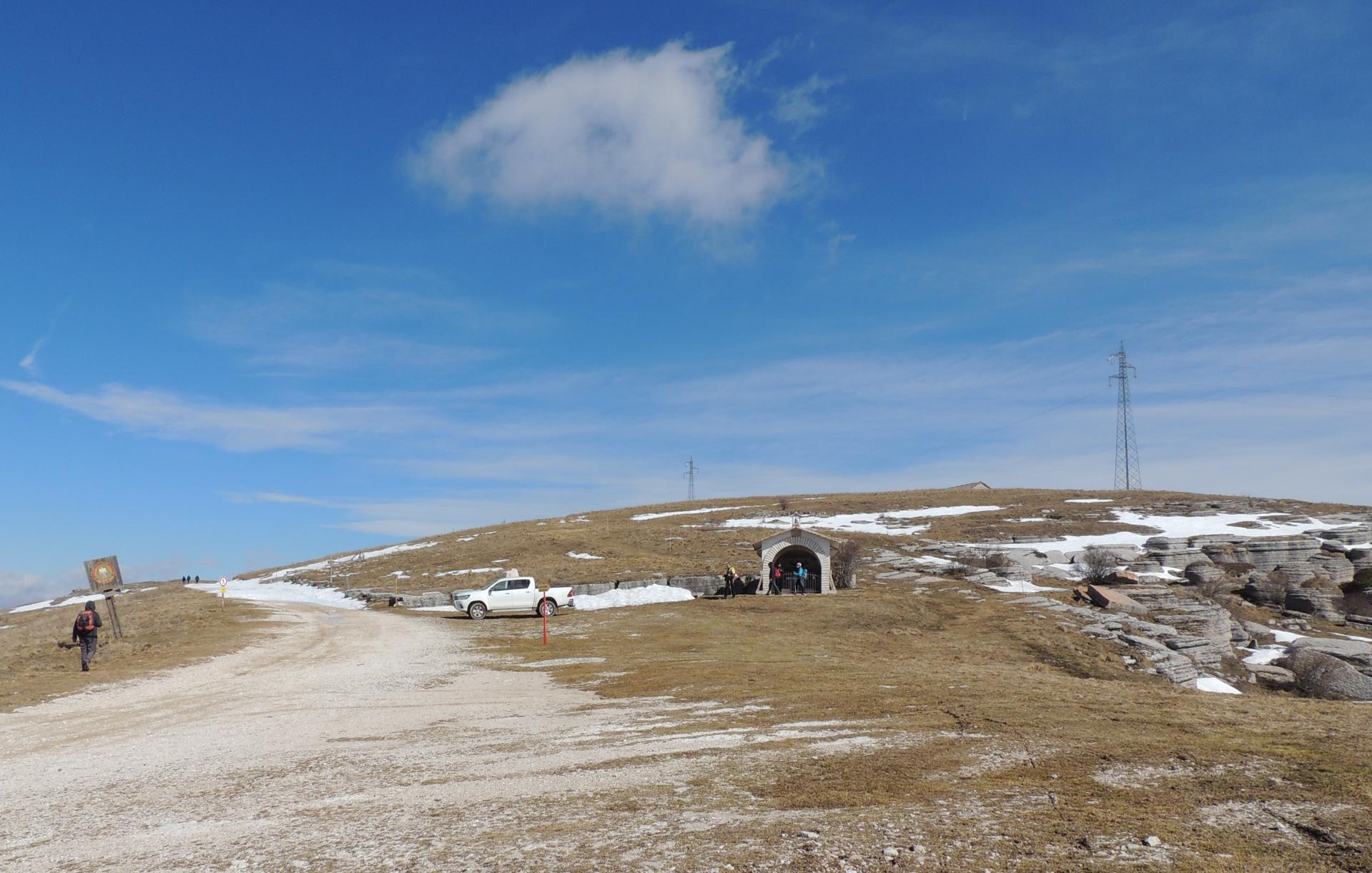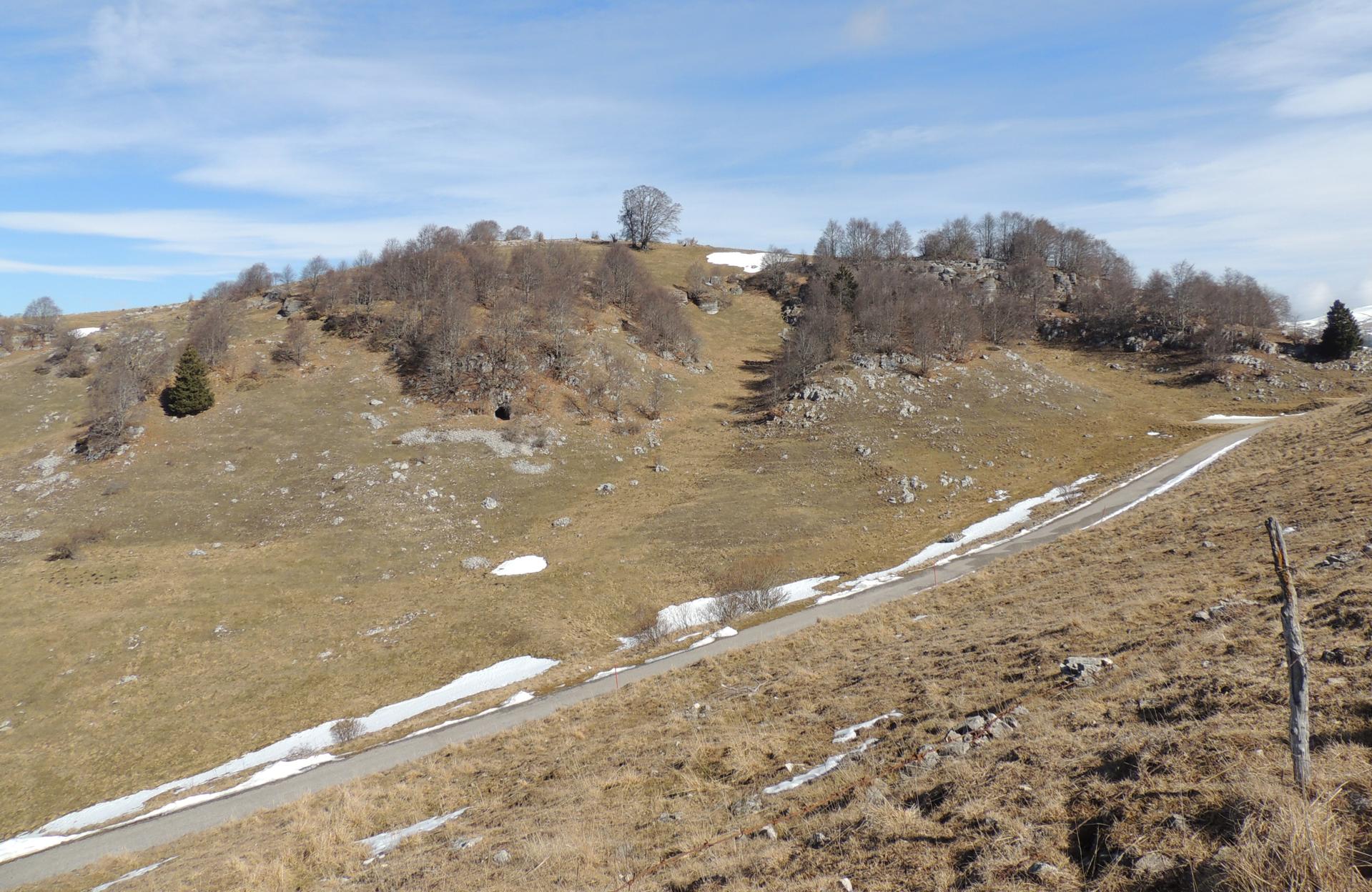 Le colline intorno a noi invece mostrano alcune grotte, segno del passaggio della Grande Guerra in queste zone.