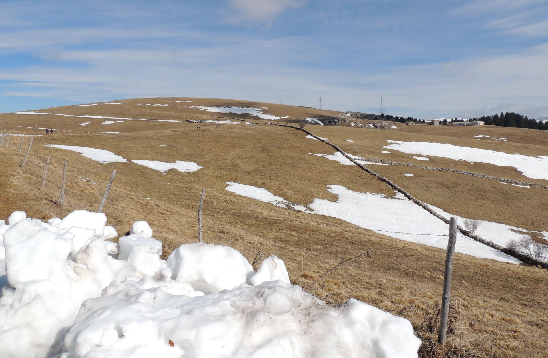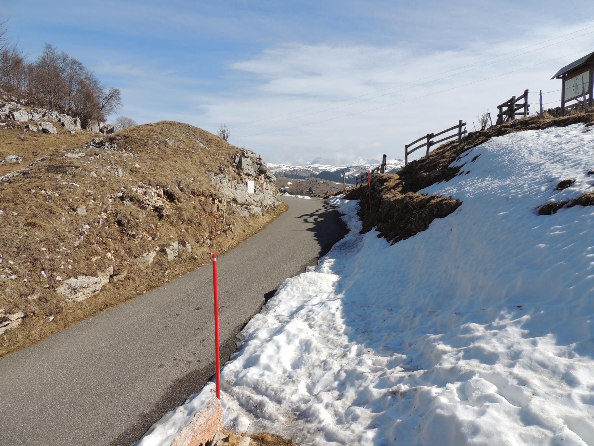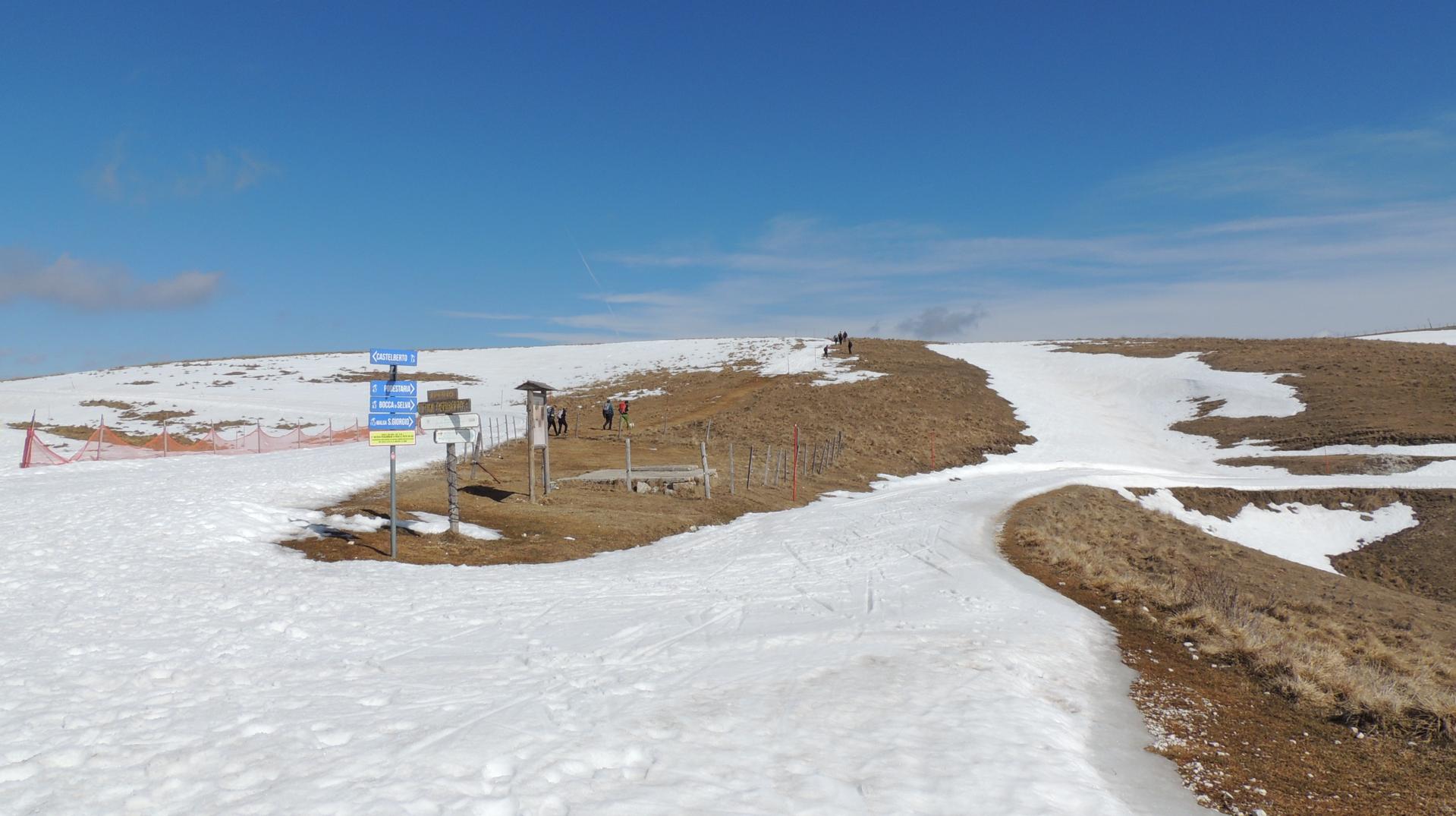 Il percorso da seguire è ben delineato, in questo periodo con le piste da sci di fondo ancora aperte, il sentiero segue la dolce dorsale di Castelberto, lasciando libera la strada agli sciatori. Ora che il Rifugio è in vista il tracciato corre sulla neve ben battuta seguendo i paletti segnavia.