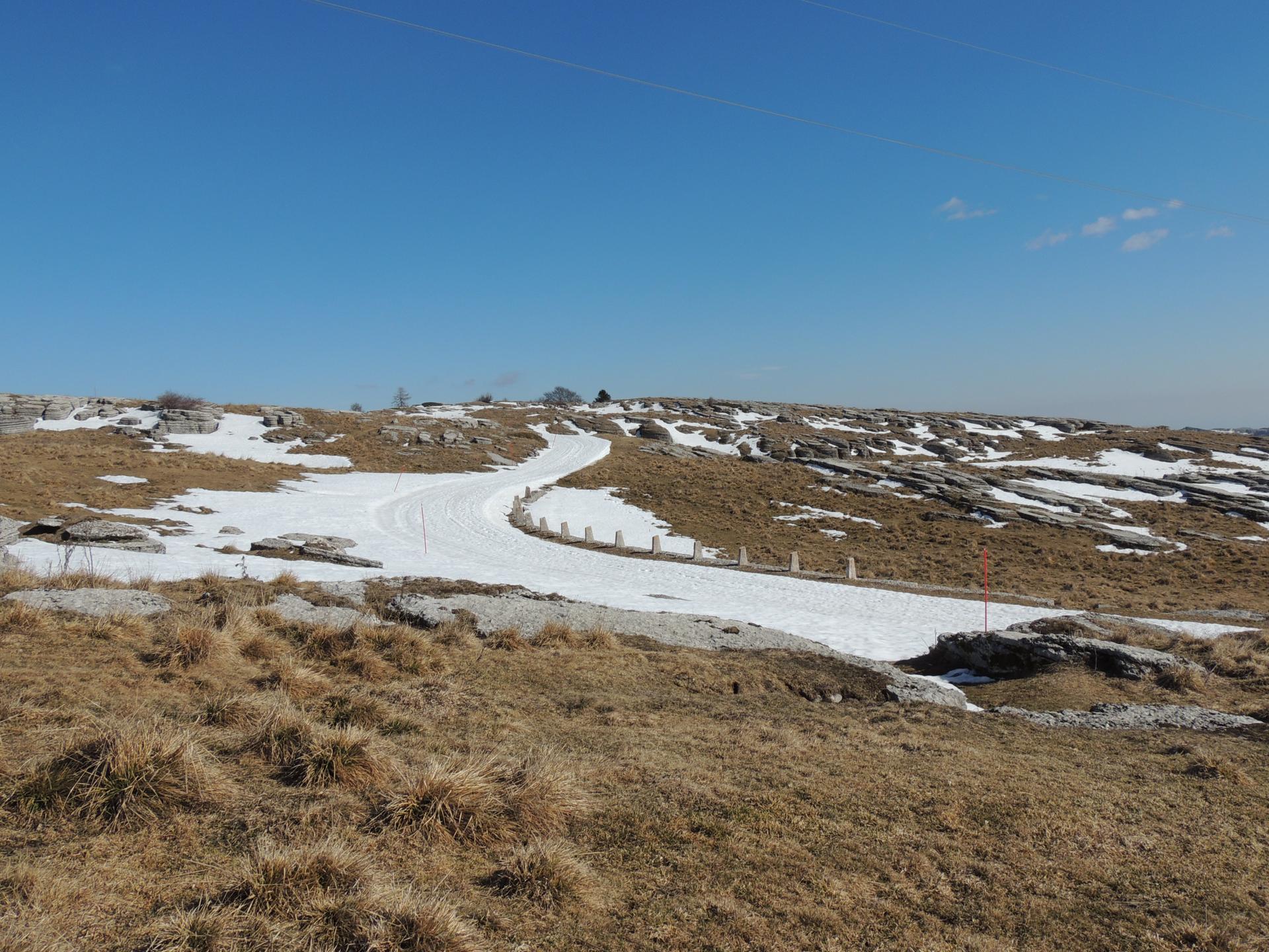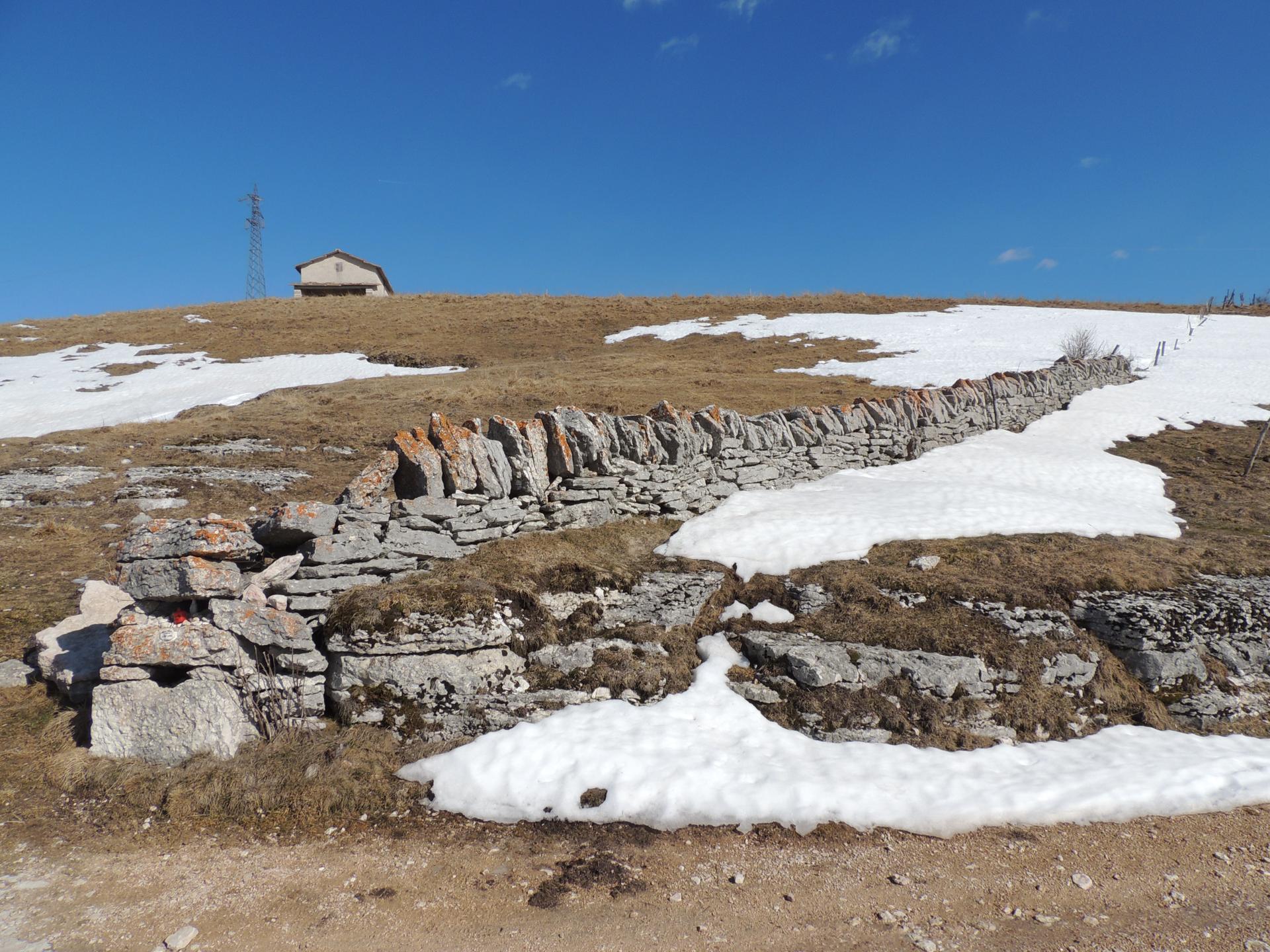 Ben visibili i caratteristici strati delle rocce della Lessinia