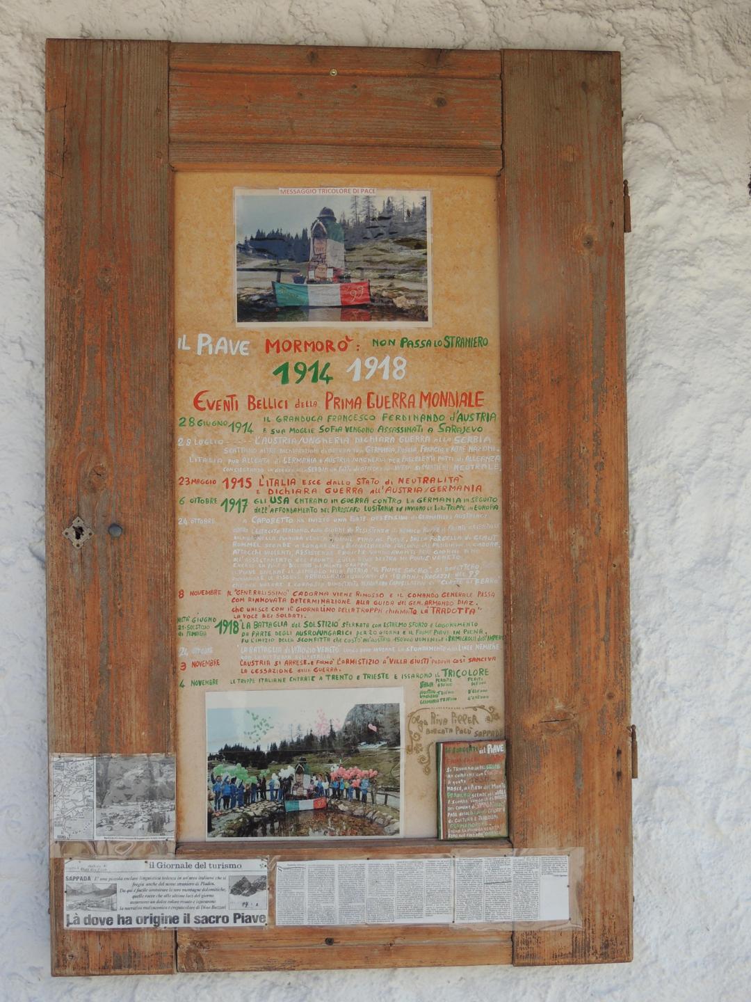 24 Ottobre 1917 - a Caporetto ha inizio una forte offensiva di germanici e austriaci, contro l'esercito italiano. Dopo giorni di resistenza il nemico ruppe il fronte Orientale e dilaga nella pianura Veneta e Friulana da Udine fino al Piave. Dalla forcella di Claut, Rommel scende a Longarone e blocca l'esercito Italiano che presidiava il Cadore.