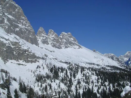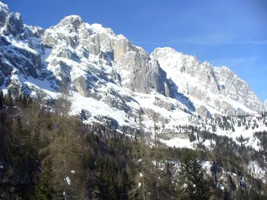 Abbiamo effettuato questa escursione sulla neve il 15 febbraio 2009. Presentiamo questo percorso con le ciaspe che si snoda ai piedi della catena meridionale delle Pale di San Martino nel gruppo Agner-Croda Grande. L'itinerario prevede di portarsi in quota al Rif. Scarpa, di effettuare un breve giro orientativo, in modo anche di prendere pratica con le ciaspe (per chi già non l'avesse) e quindi seguendo i tracciati dei sentieri CAI 773 e 772, scendere attraverso i boschi di Malga Luna per arrivare al punto di partenza.