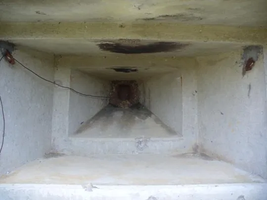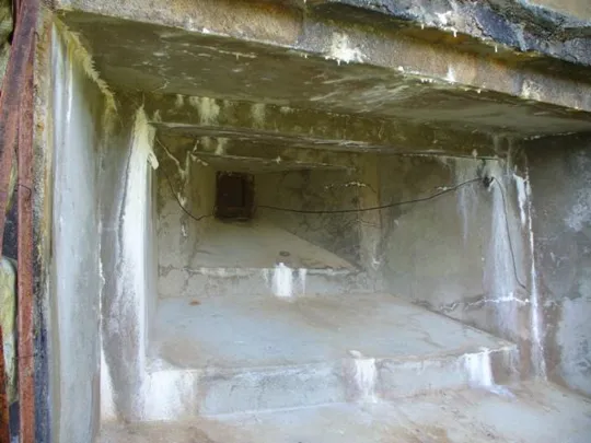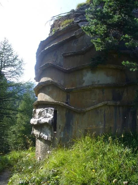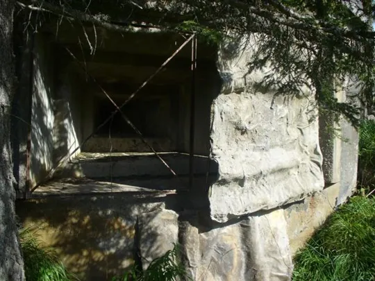 La fortificazione è completamente e appositamente ricoperta da terreno e alberi che ne completano la mimetizzazione.