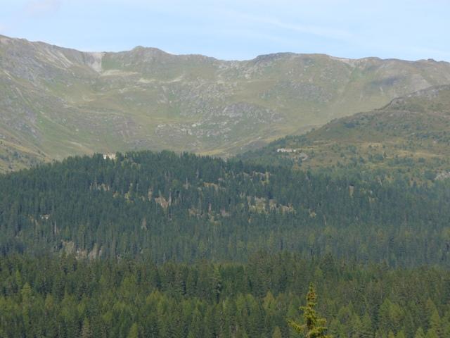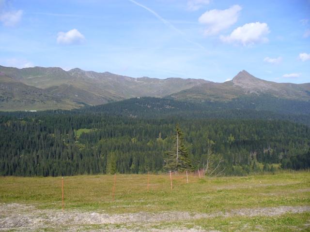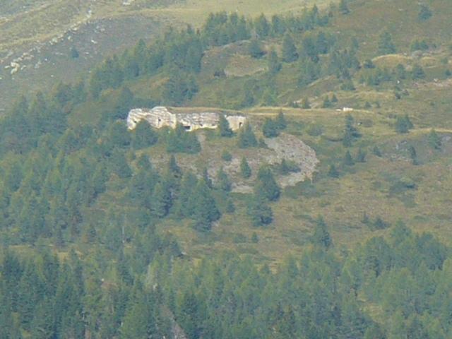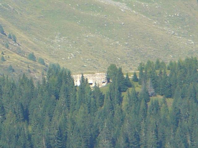 Sulla sinistra al limitare del bosco si scorge una costruzione in bianco è il Rifugio Malga di Nemes - Alpe Nemes H?tte a 1.877 mt. mentre sulla sommità del colle al centro si riesce a vedere una postazione semi mimetizzata