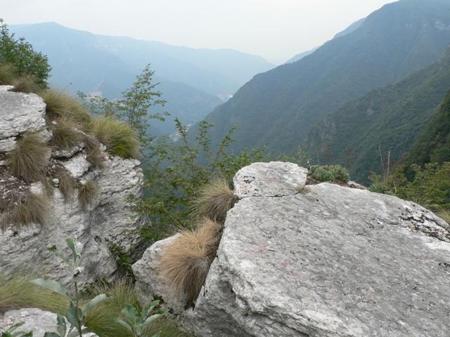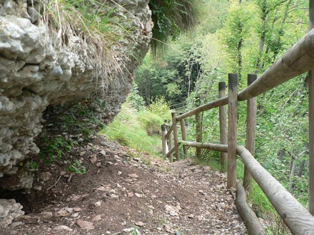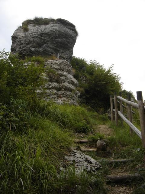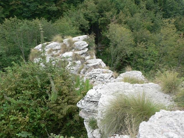 Si continua attraverso il bosco lungo il fianco della montagna, fino ad intravedere le prime rocce del complesso.