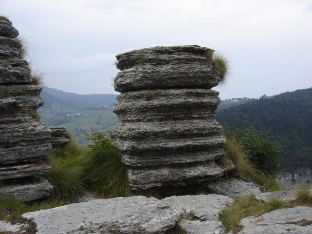 Senza accorgersi quasi inaspettatamente si giunge alla meta e lo spettacolo è duplice. Da un lato, le rocce lavorate dall'acqua e dal vento hanno forse fornito ai primi abitanti dell'Altopiano un luogo da consacrare alla bellezza della natura, dall'altro le pareti quasi a precipizio che si snodano attorno al promontorio creano una cornice che esalta ancor di più la suggestione del luogo.