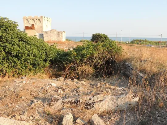 La torre si trova in prossimità dell'incrocio tra la SP122 e la strada per Maruggio, quindi 5 minuti sono più che sufficienti per raggiungerla.