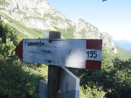 Inizialmente si tratta di un facile sentiero in mezzo al bosco, e dopo un 10-15 minuti bisogna prestare attenzione a prendere la deviazione, sulla sinistra, per il sentiero 195, con l'indicazione "Fumante".