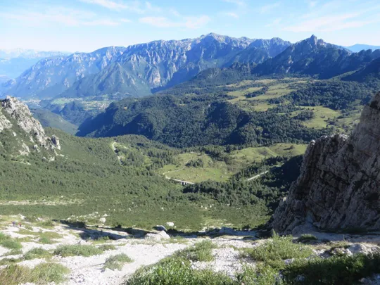 Vista del fondo del ghiaione, con il Pasubio sullo sfondo