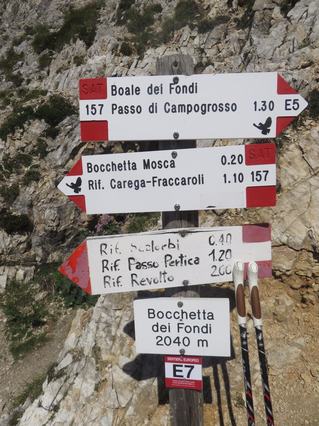Dopo aver percorso un bel tratto di strada si arriva a Bocchetta Fondi. Questa è considerata la normale del Monte Carega, e a opinione dell'autore è la discesa più facile per scendere il versante nord del Monte Carega.