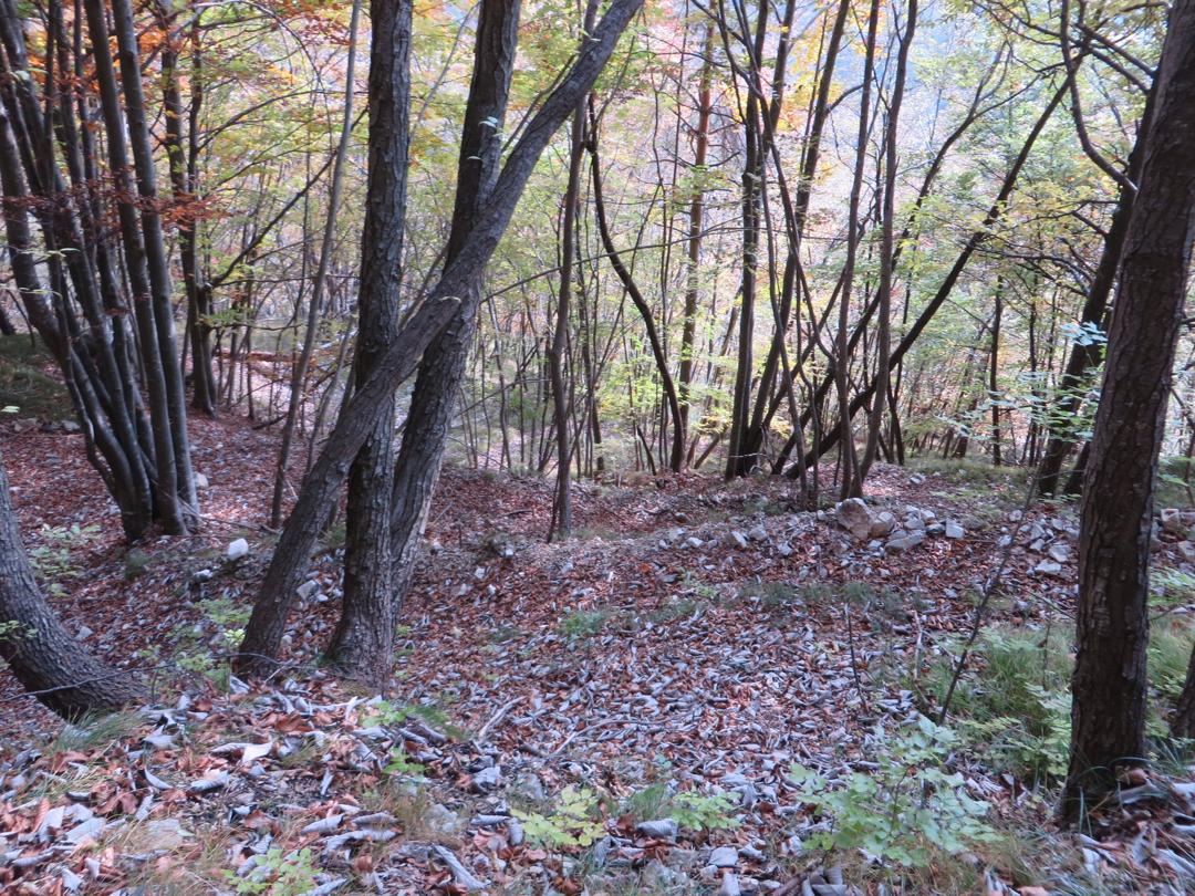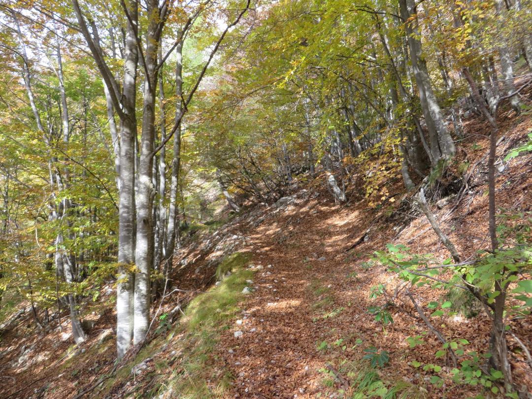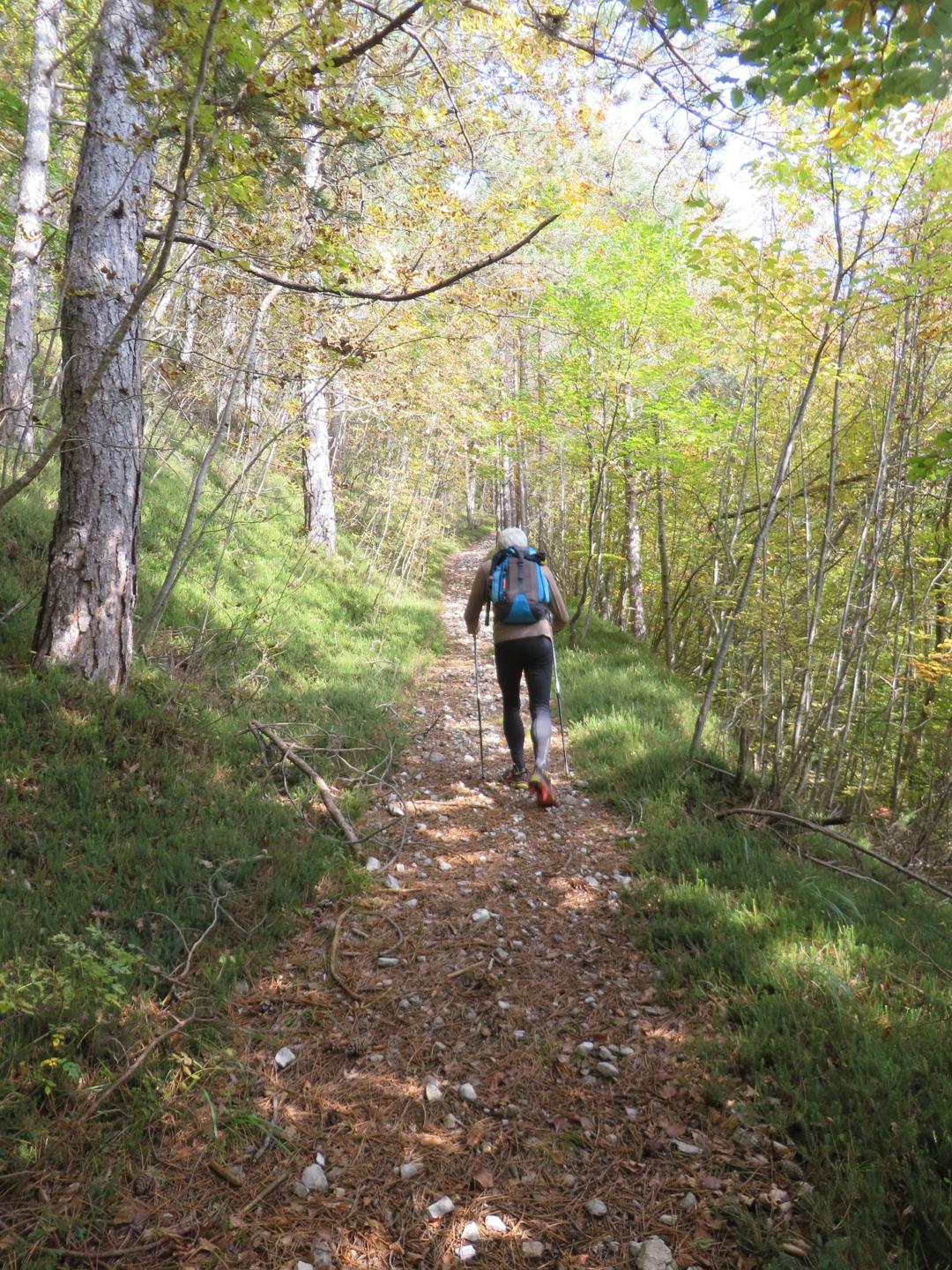 Dopo le calcare inizia il pezzo in mezzo al bosco, un sentiero ripido con parecchi tornanti. Ci stiamo addentrando nella valle.