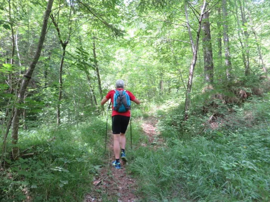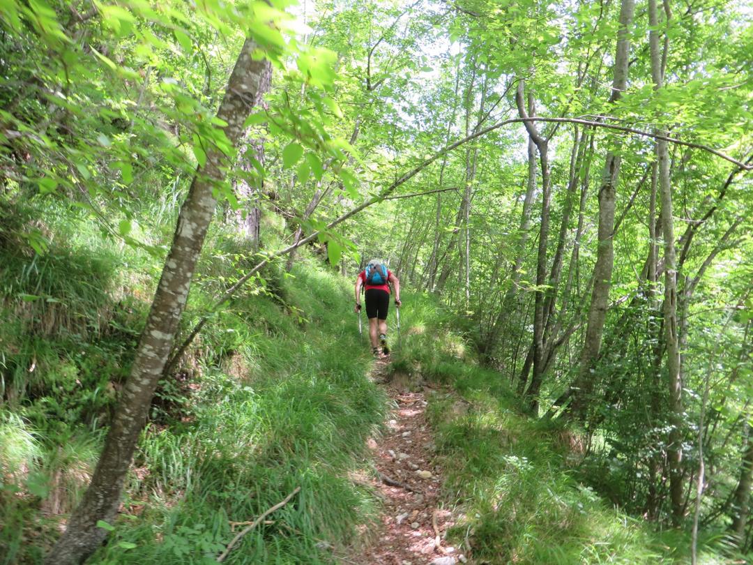 C'è da fare un altro pò di bosco ma si comincia ad uscire dalla valle e a vedere le montagne intorno.