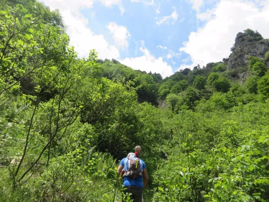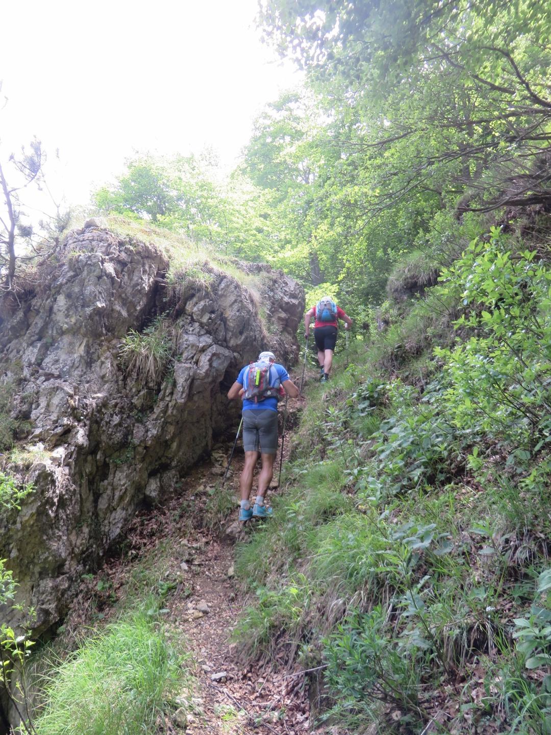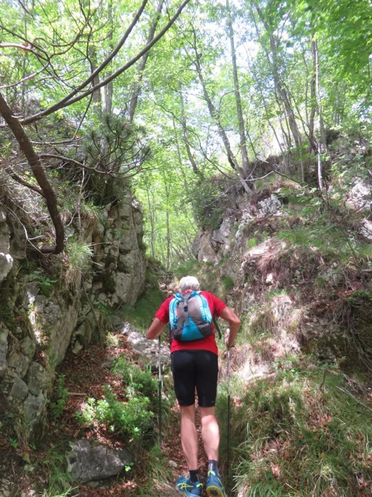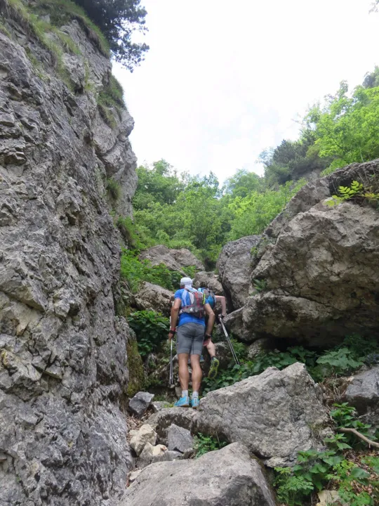 Dopo aver fatto un passaggio stretto in mezzo alle rocce e una leggera discesa si comincia a guadagnare quota con dei ripidi tornantini.