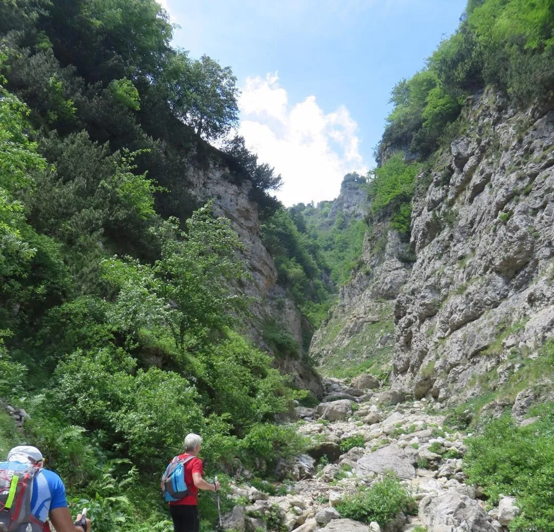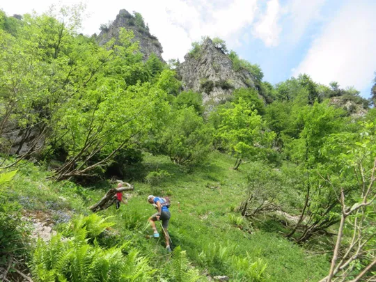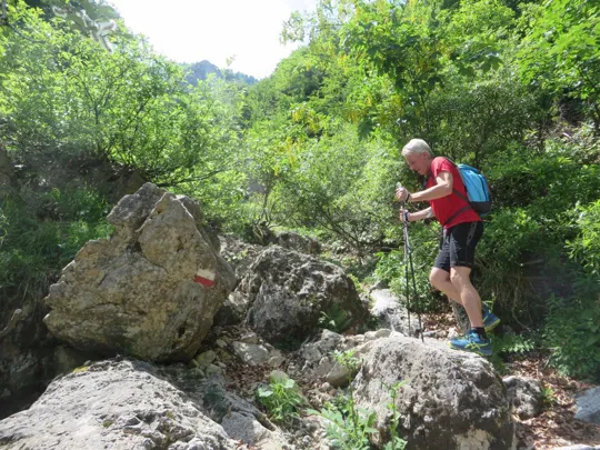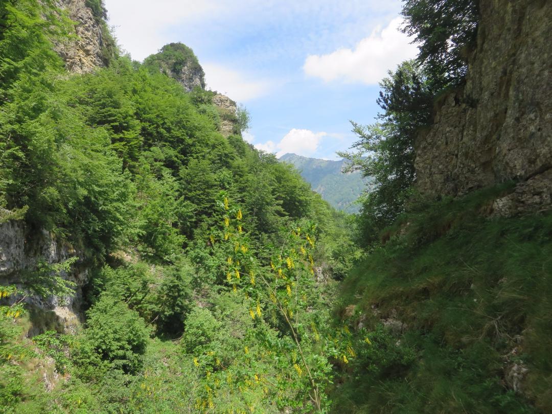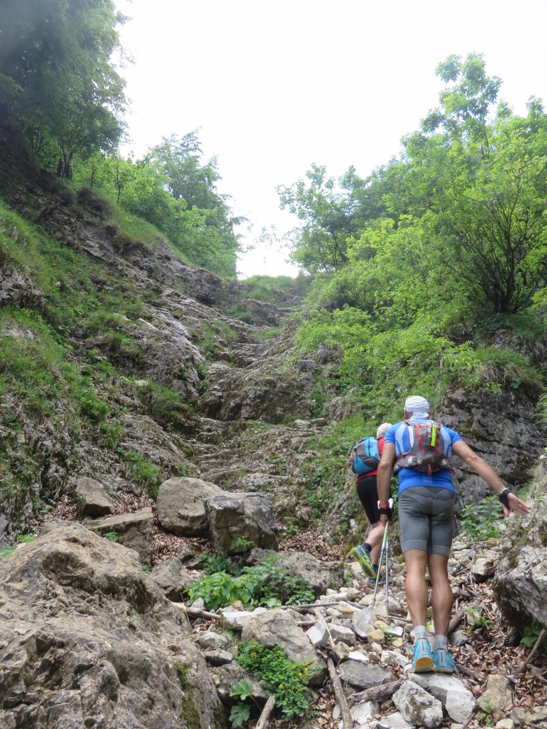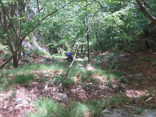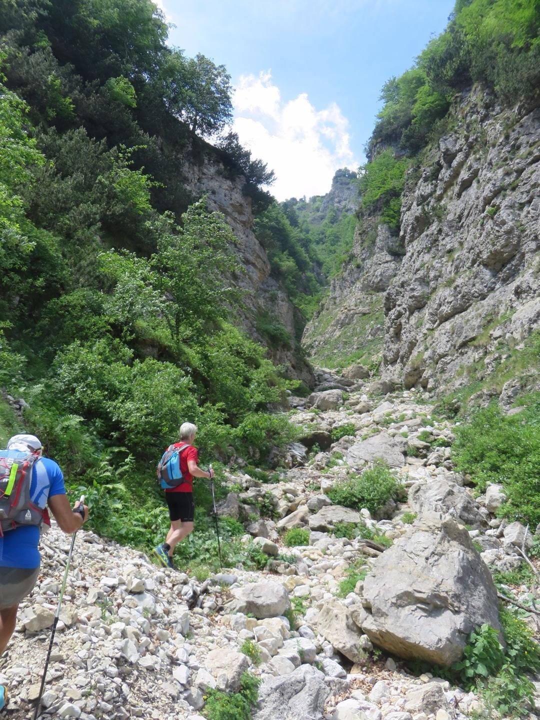 A questo punto ci si immette nella parte più impegnativa del percorso: un letto asciutto di un torrente. Il sentiero è segnato poco e bisogna un pò arrangiarsi per trovare la strada, in compenso si cominciano a vedere dei bei panorami.