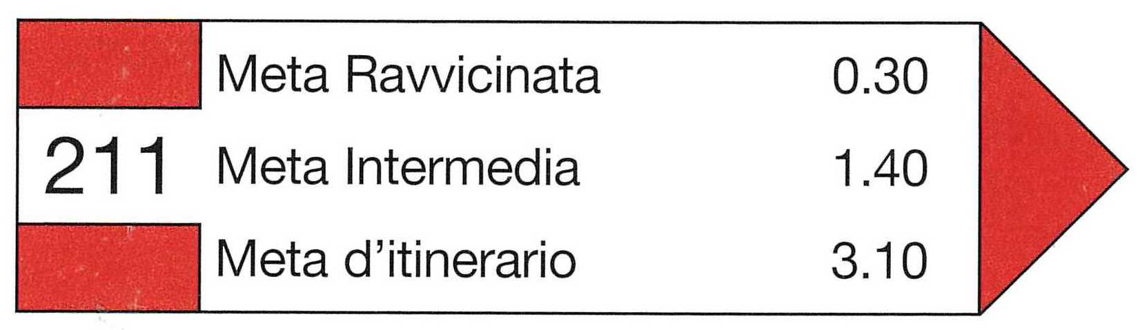 Usata per indicare la direzione del sentiero e segnalare le località che si raggiungeranno con il tempo indicativo (in ore e minuti) impiegato per raggiungerle da un medio camminatore, escludendo le soste.